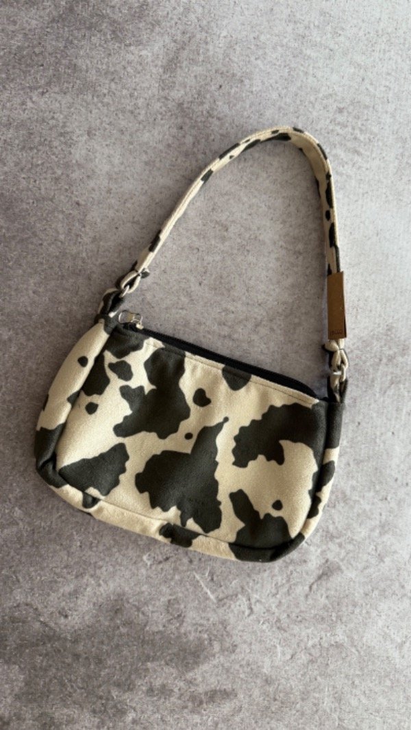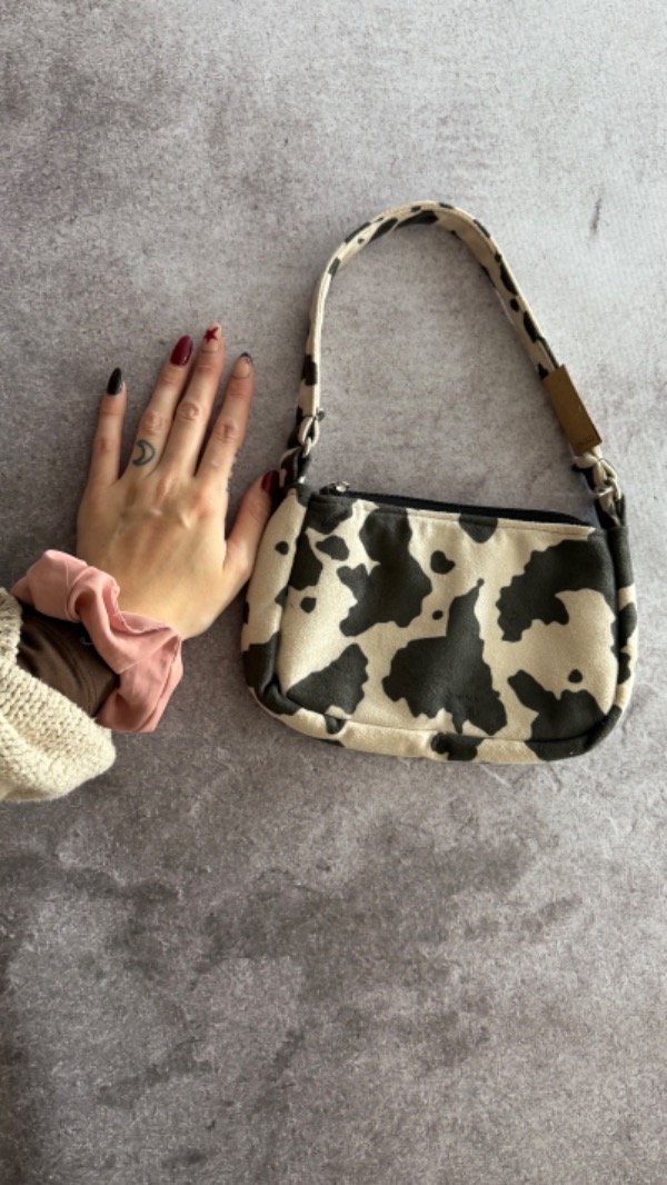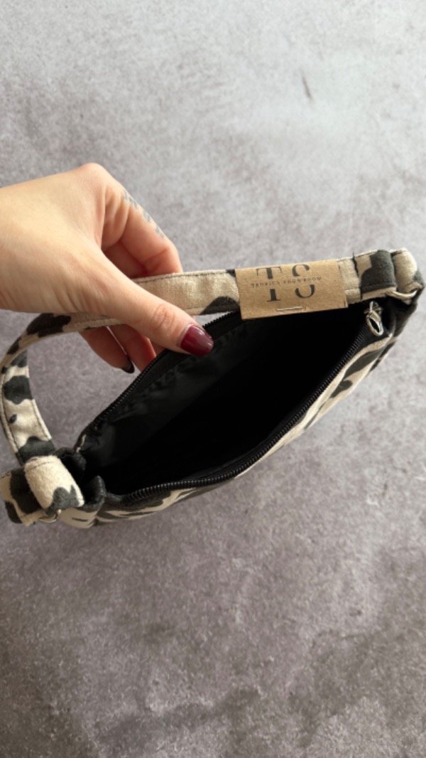 Bandolera de gamuza con cierre de metal plateado, tamaño chico.