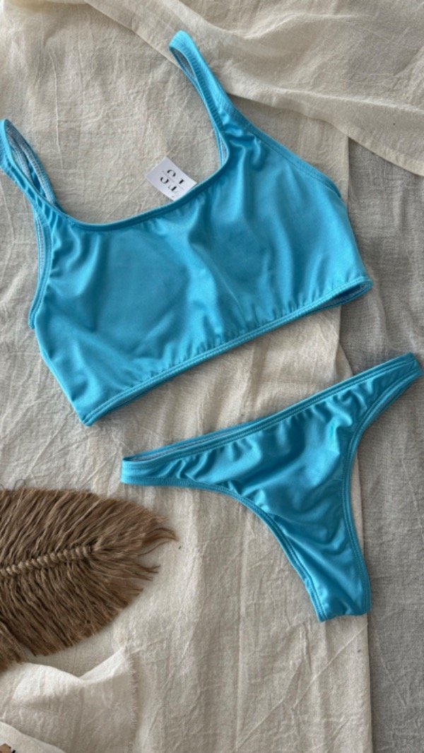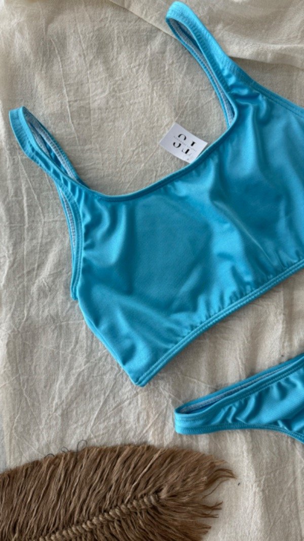 Bikini de lycra con top. Corpiño con tazas soft removibles, bombacha less