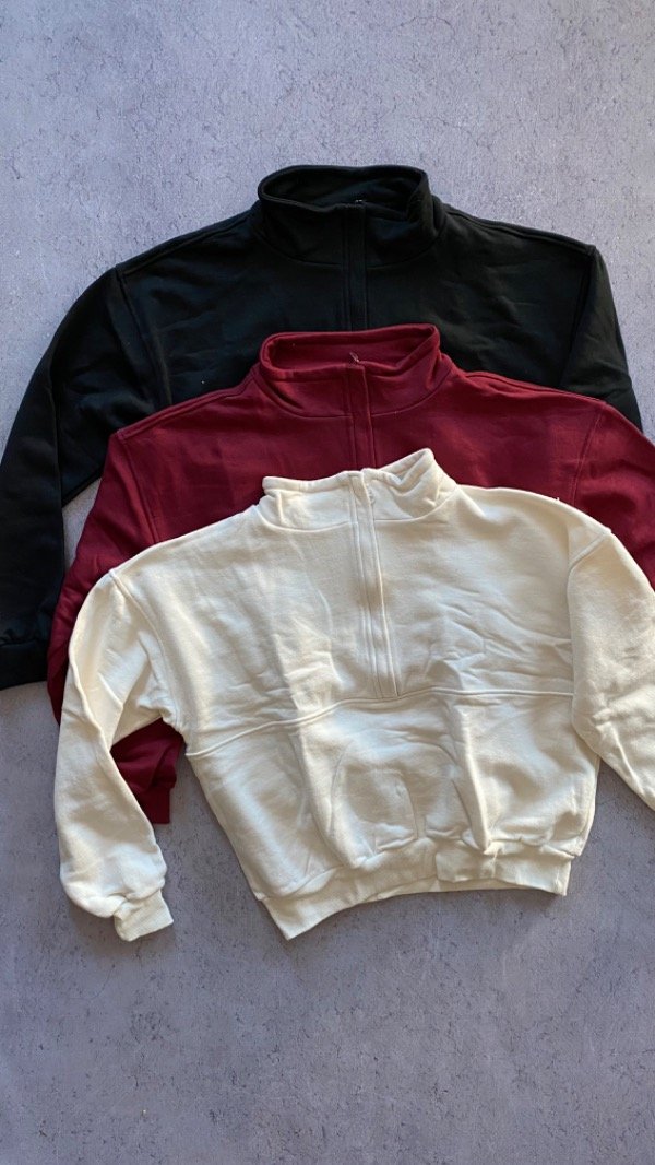 Buzo con cierre de algodon rustico. largo a la cadera aprox, talle unico para M