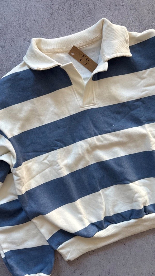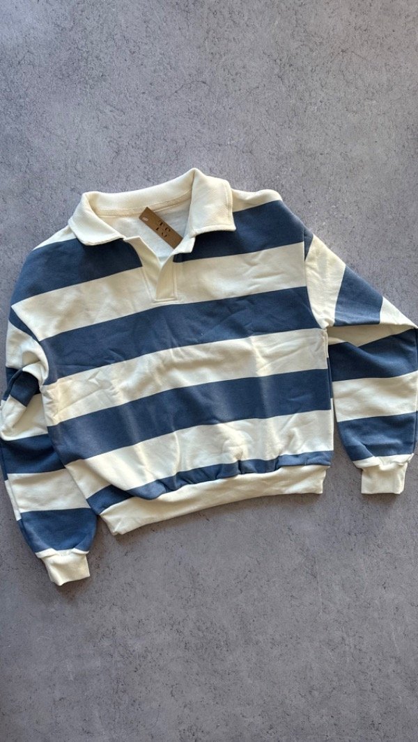 Buzo rayado de algodon con una leve frisa. largo a la cadera aprox, talle unico van hasta L