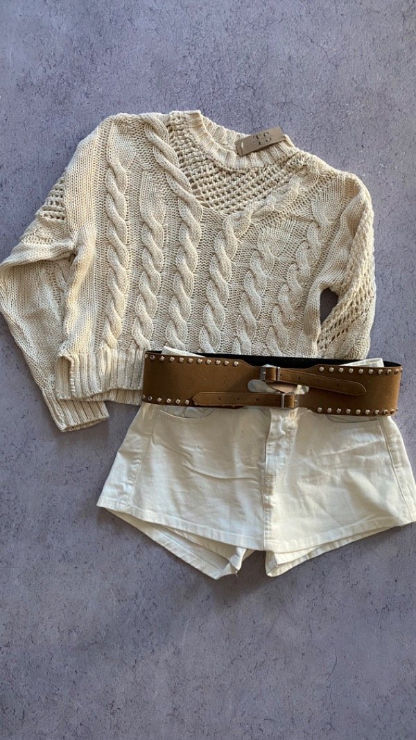 sweater de hilo de algodon, caladito. modelo arriba de la cadera aprox, talle unico, va para un S/M