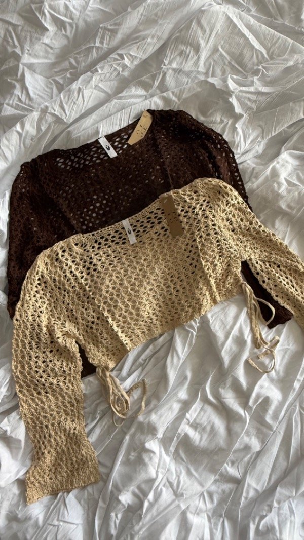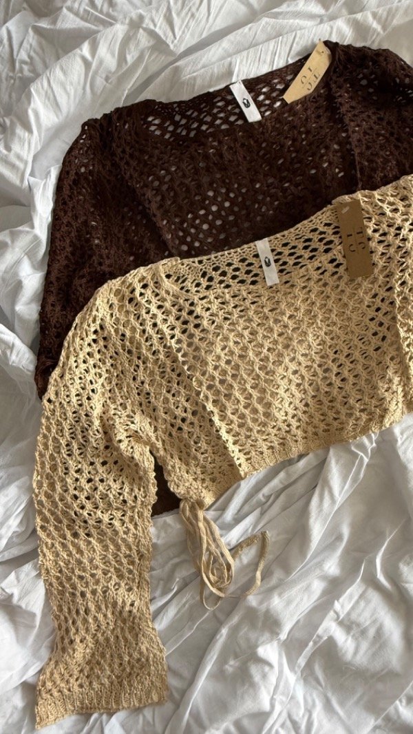 sweater de hilo crochet, calado. modelo a la cintura aprox. talle unico va para S/M