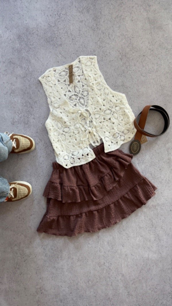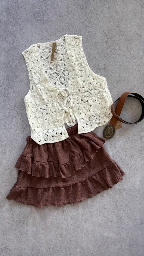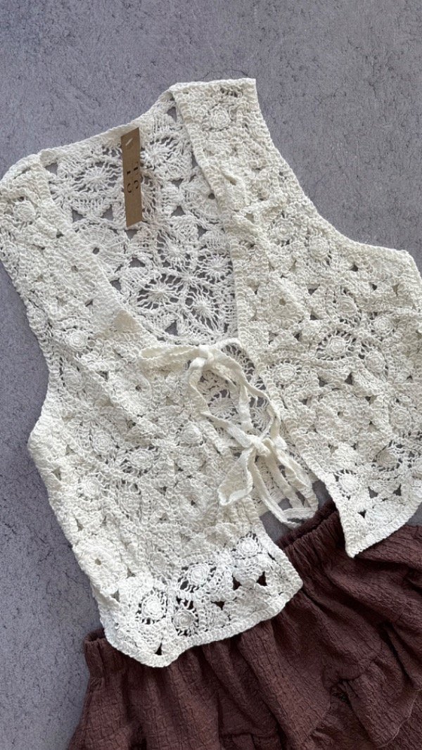 Chaleco de hilo importado, para atar en el frente. elastizado, modelo arriba de la cadera, talle unico aprox M,