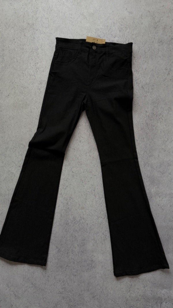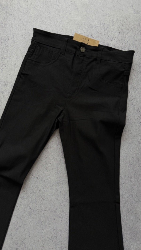pantalon oxford negro liso de gabardina, tiro alto. elastizado.