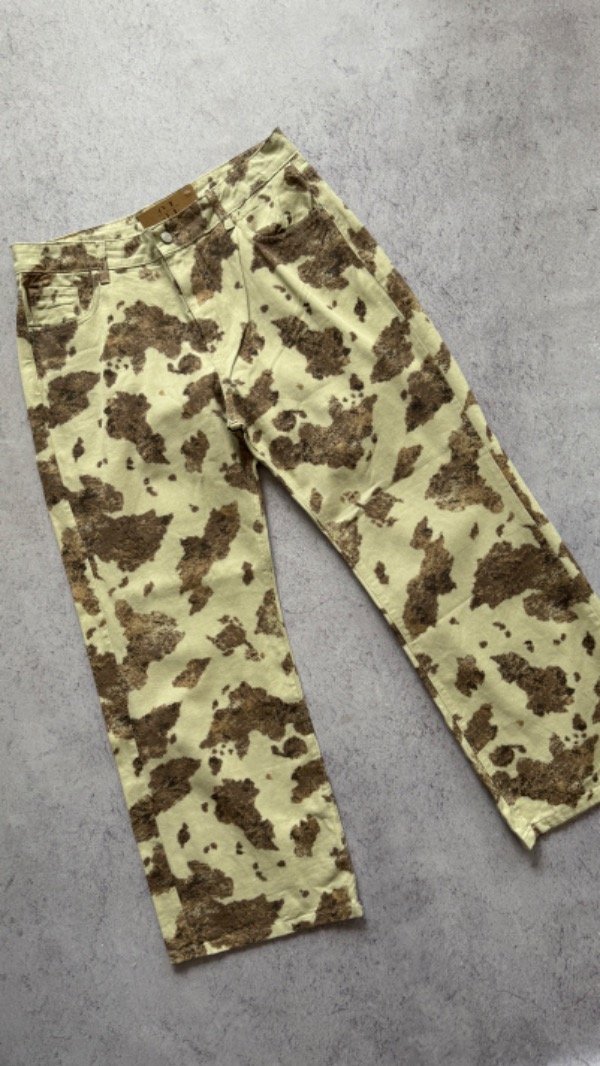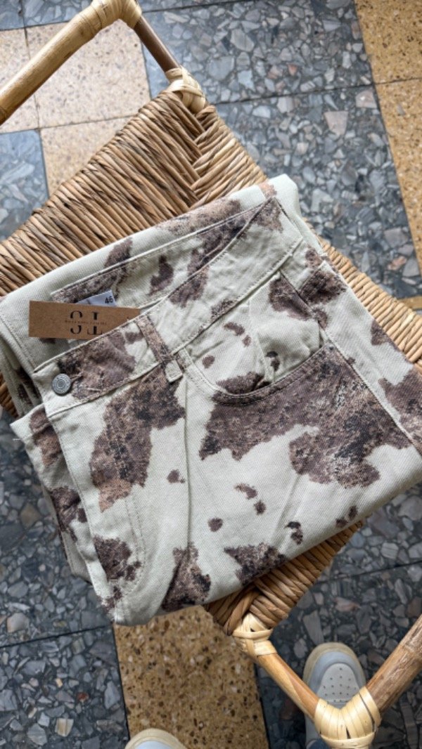 Wide leg de gabardina con estampa vaca, tiro alto. rigido.