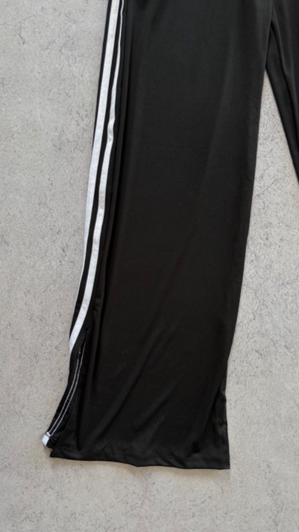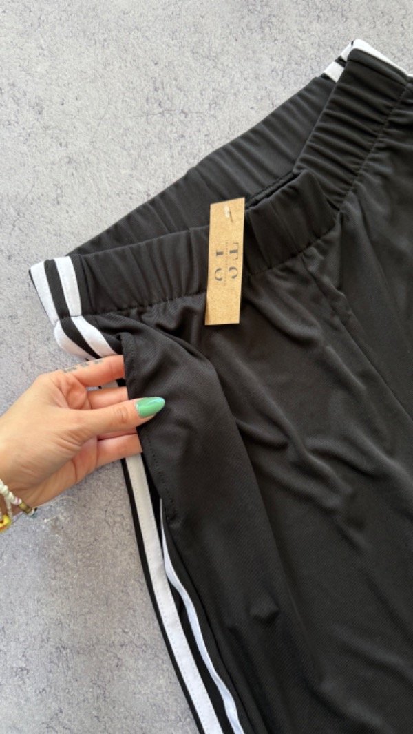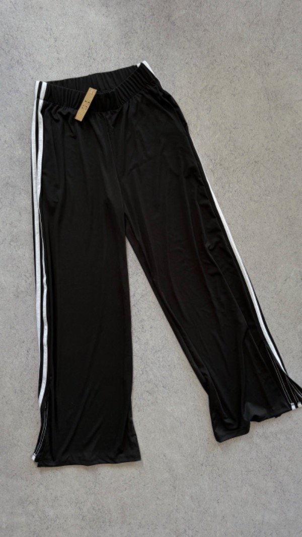 pantalon ancho de tricot con lineas, tiene bolsillos. tiro alto. elastizado. talle unico, aprox 36-40
