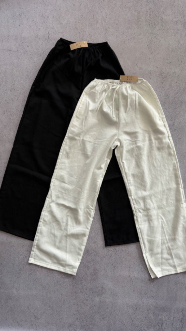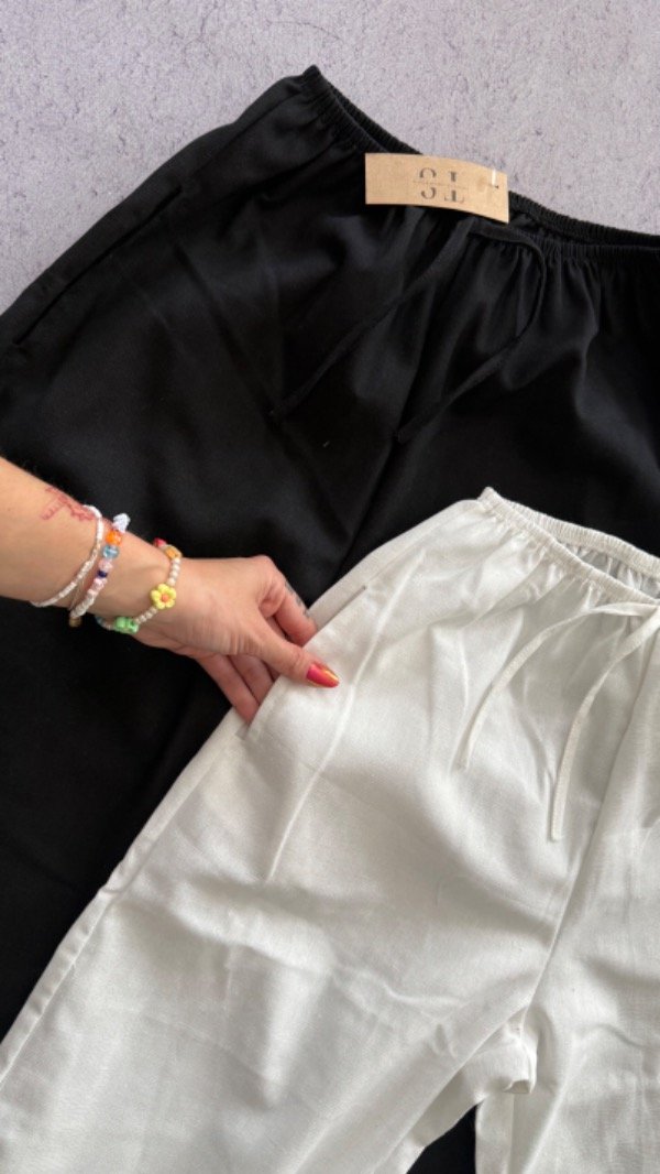pantalon ancho de lino, con bolsillos. tiro alto. cintura elastizada. talle unico aprox S(36/38)