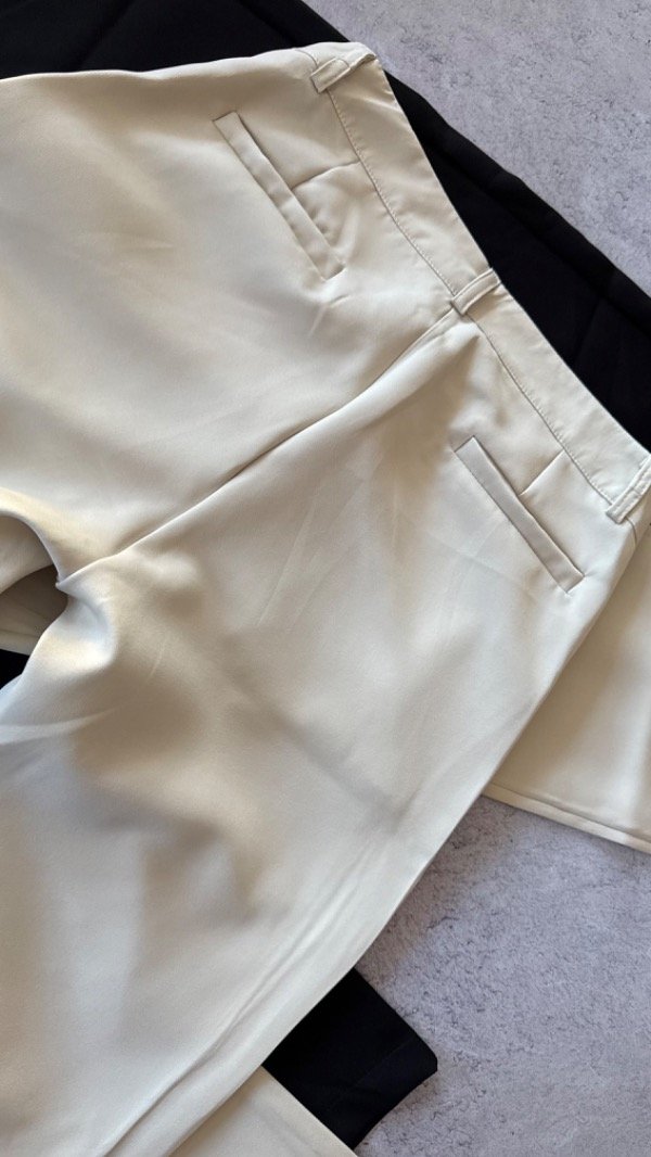 pantalon sastrero de twill crepe, tiro alto. No cede. los talles son amplios