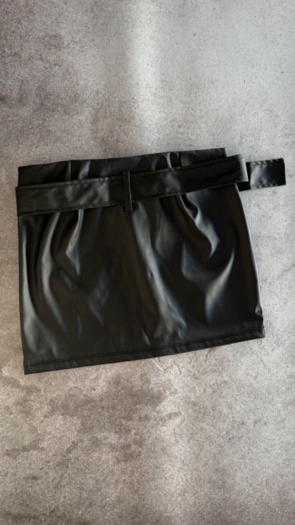 pollera de cuerina con cinto removible, tiro medio/alto es elastizada. talle unico va para un S/M