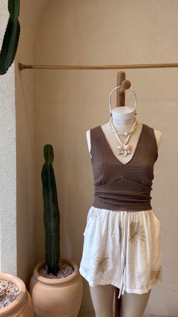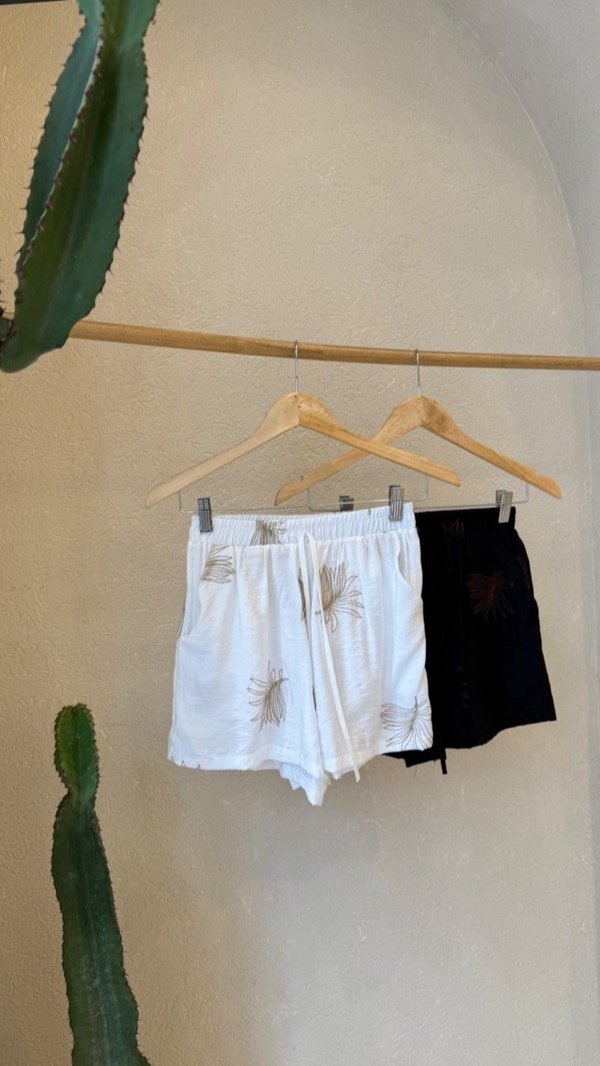 short de lino bordado, modelo tiro alto elastizado. talle unico aprox 36/38