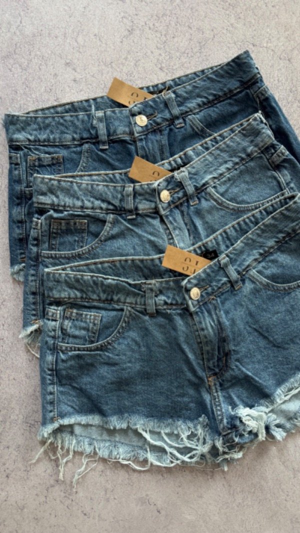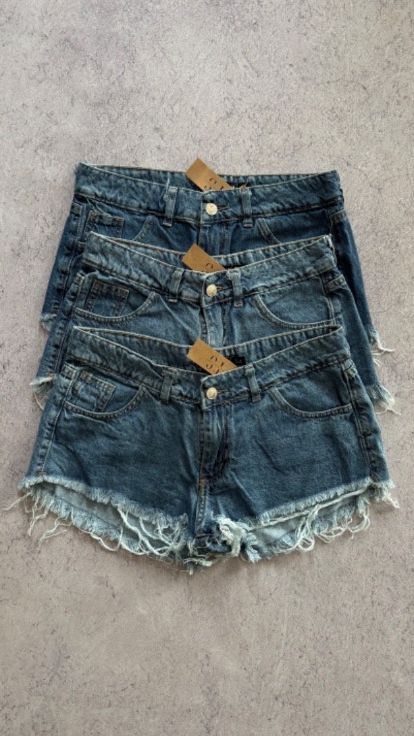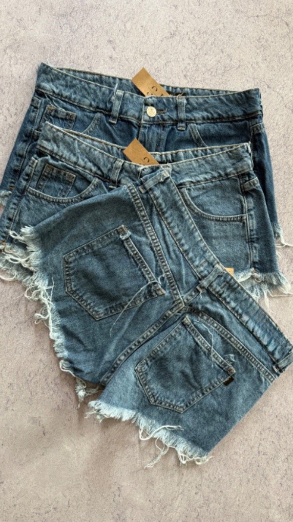 short de jean tiro bajo, rigido. corte mom desflecado.