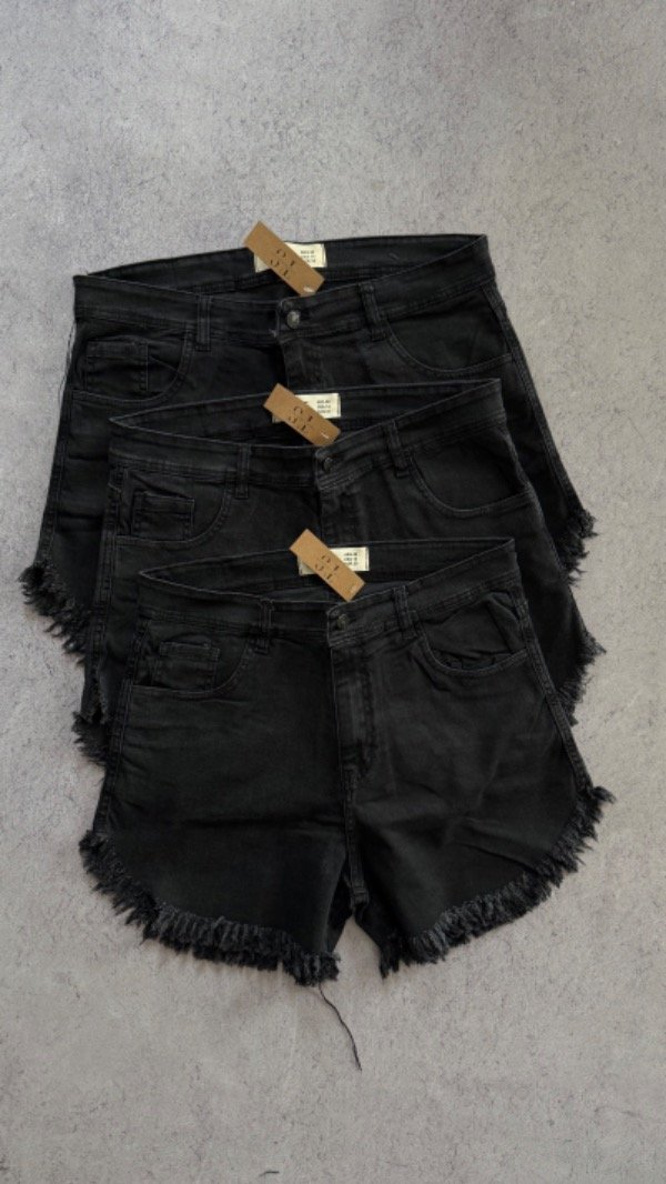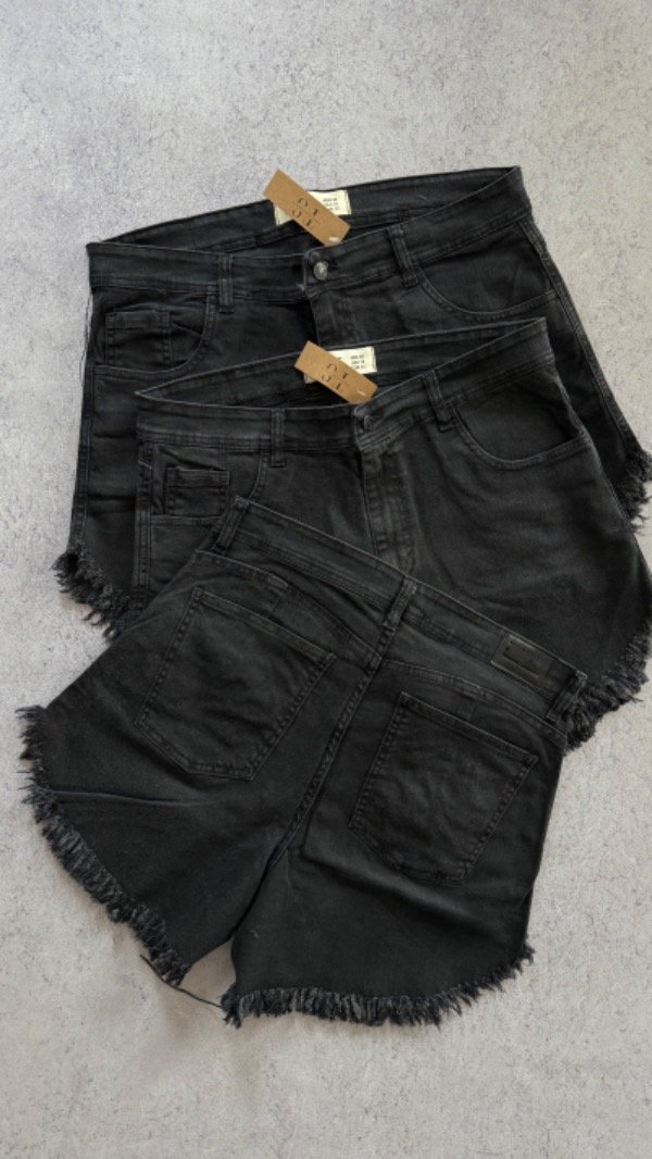 short de jean tiro alto, elastizado. corte mom desflecado.