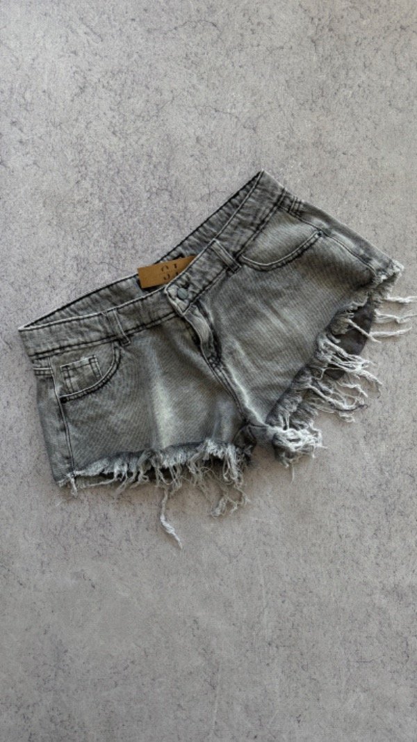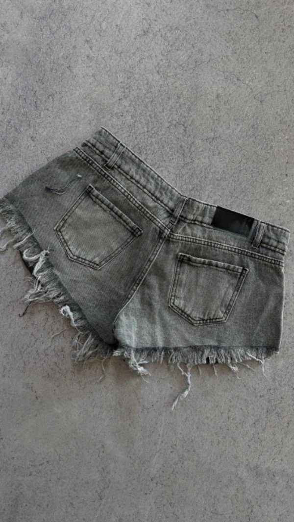 short de jean tiro bajo, rigido. corte mom desflecado.