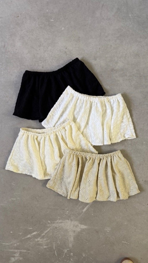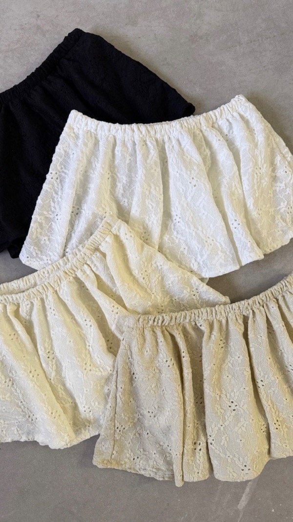short pollera de brodery, con volado, tiro medio/bajo. talle unico aprox 36/38