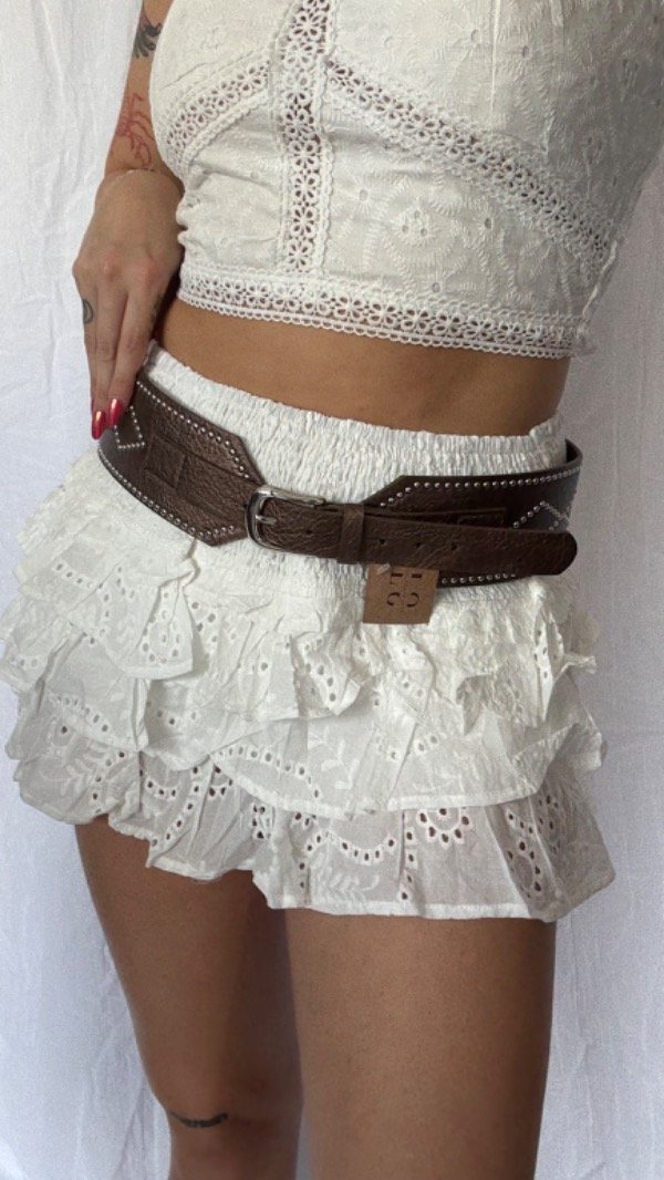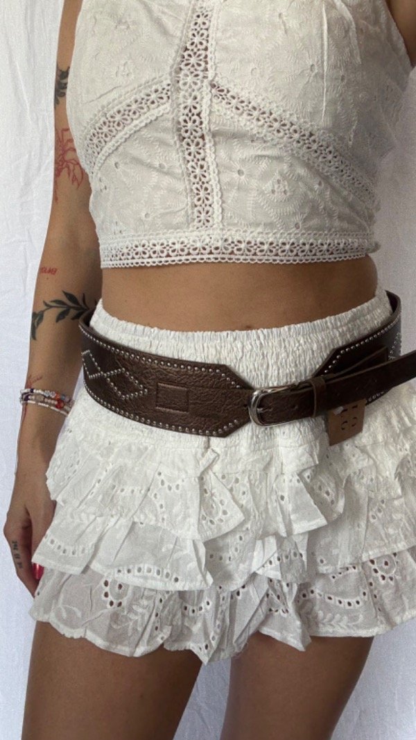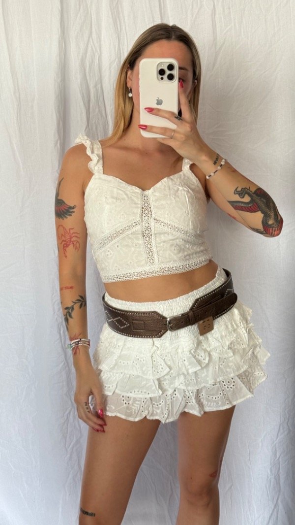 Short pollera de brodery, con cintura elastizada. tiro medio/alto.