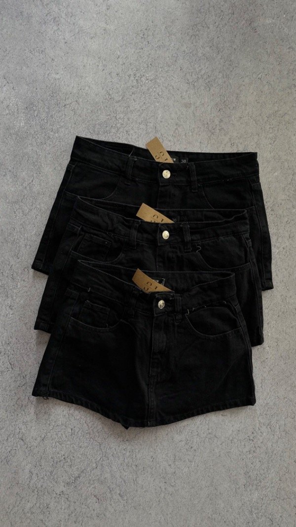 short pollera de jean, modelo tiro medio/bajo. es rígido.