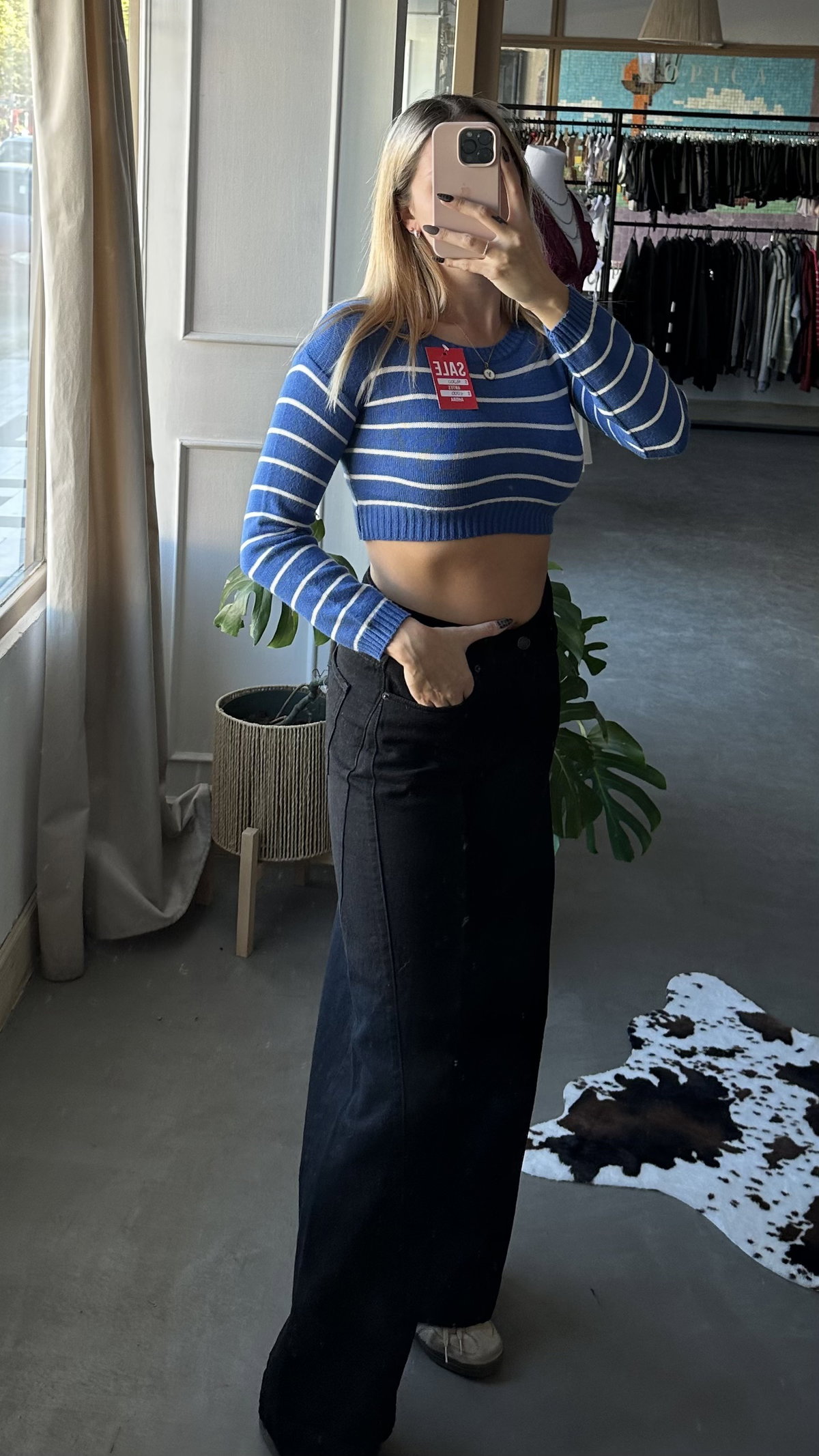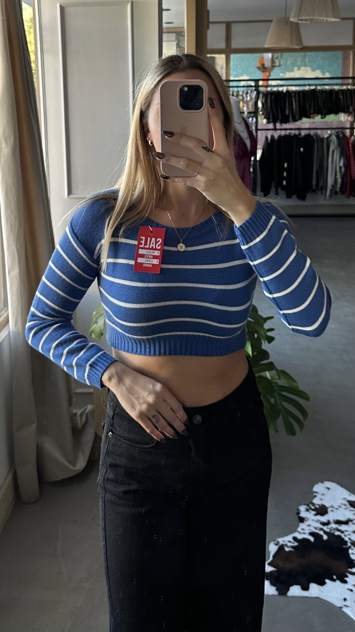 Sweater de bremer rayado. talle unico aprox XS/S. modelo corto.