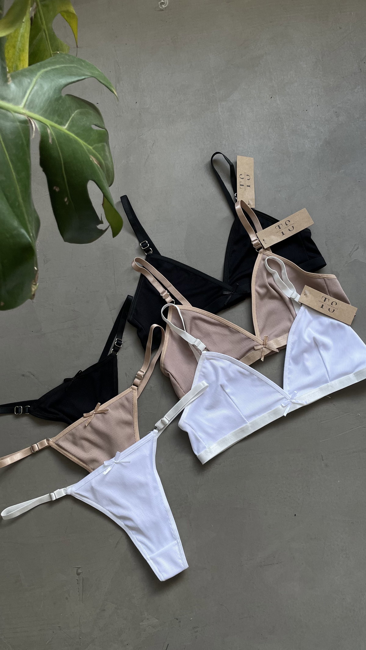 Conjunto de morley liso. corpiño sin relleno. bombacha colaless regulable.