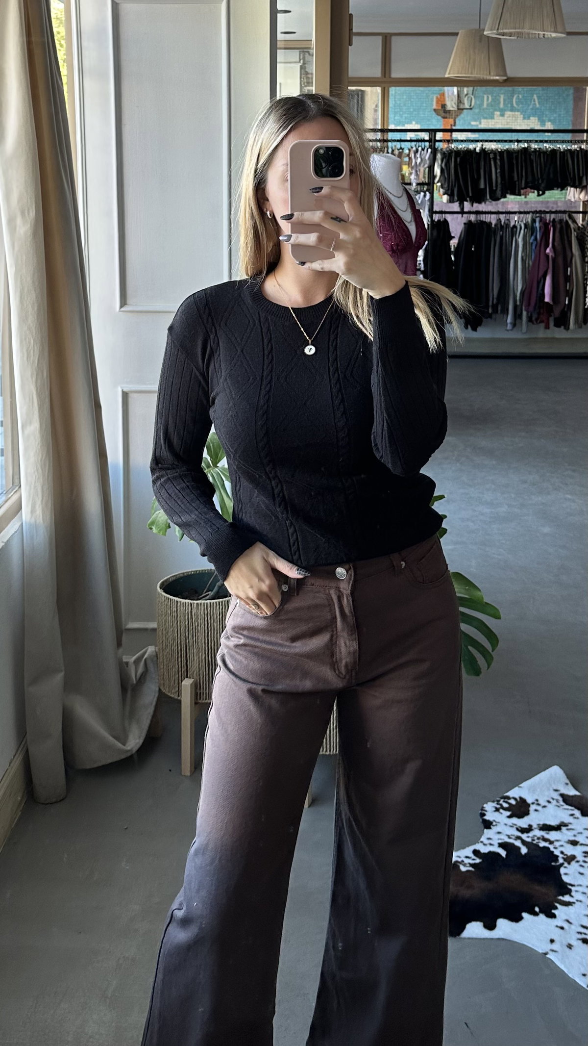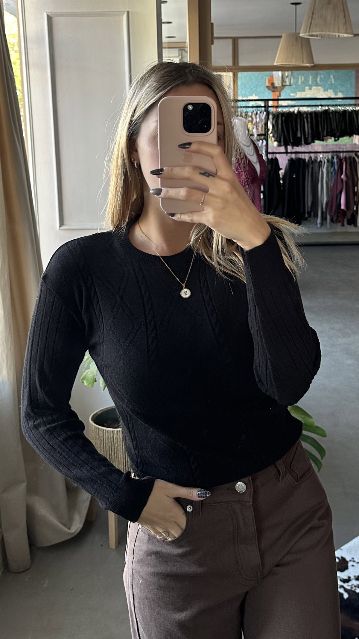 sweater de bremer rayado, modelo corto entre la cintura y la cadera, elastizado. talle unico, va hasta un S/M aprox.