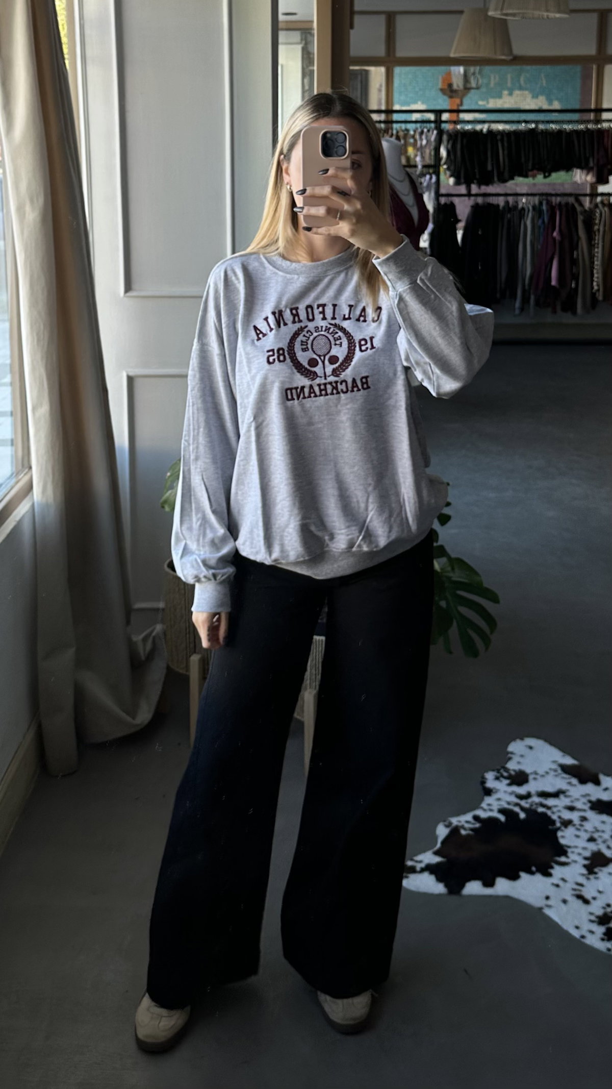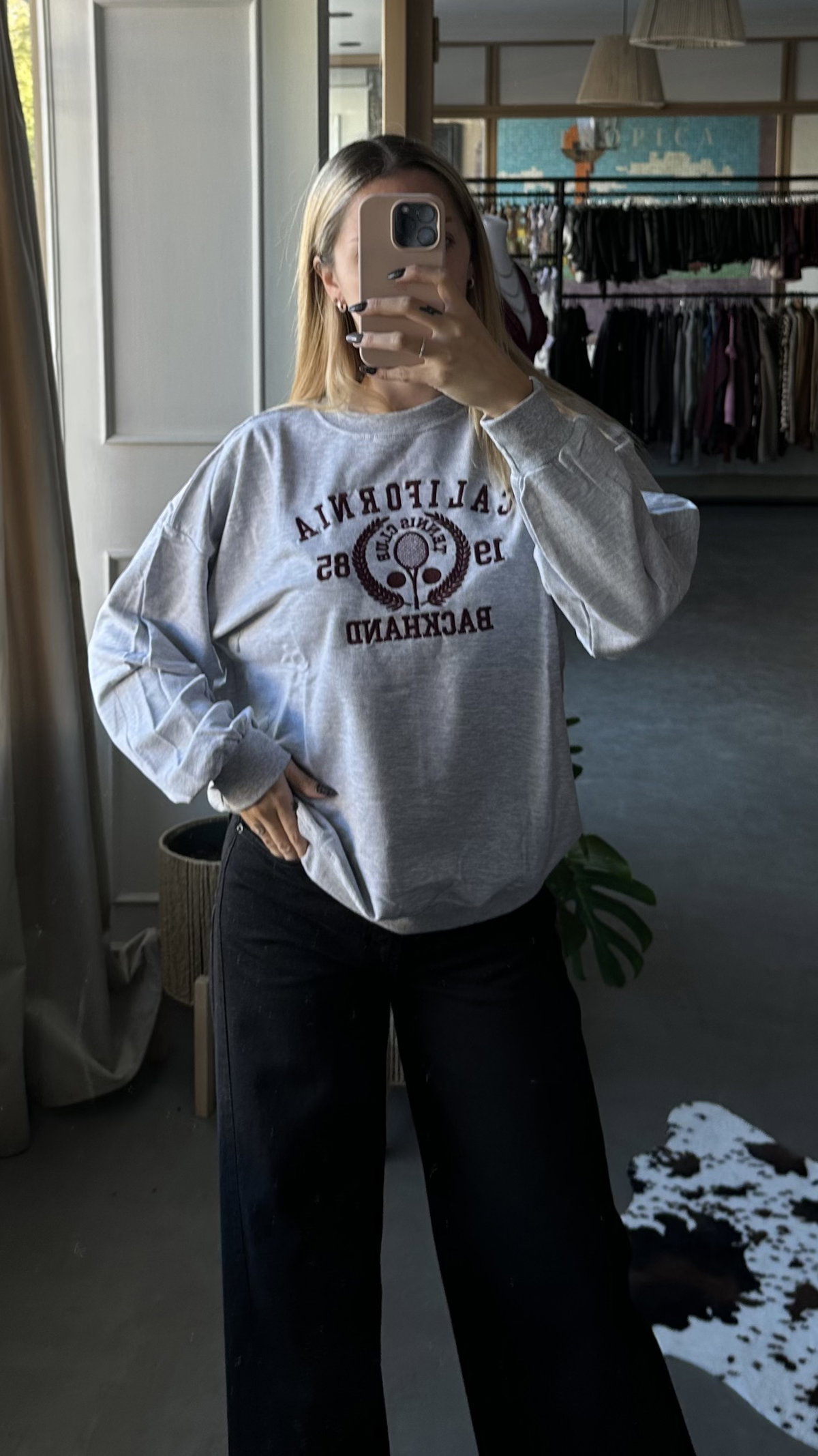 Buzo de algodon rustico con bordado en el frente. modelo over, largo a la cadera, talle unico va hasta un XL.