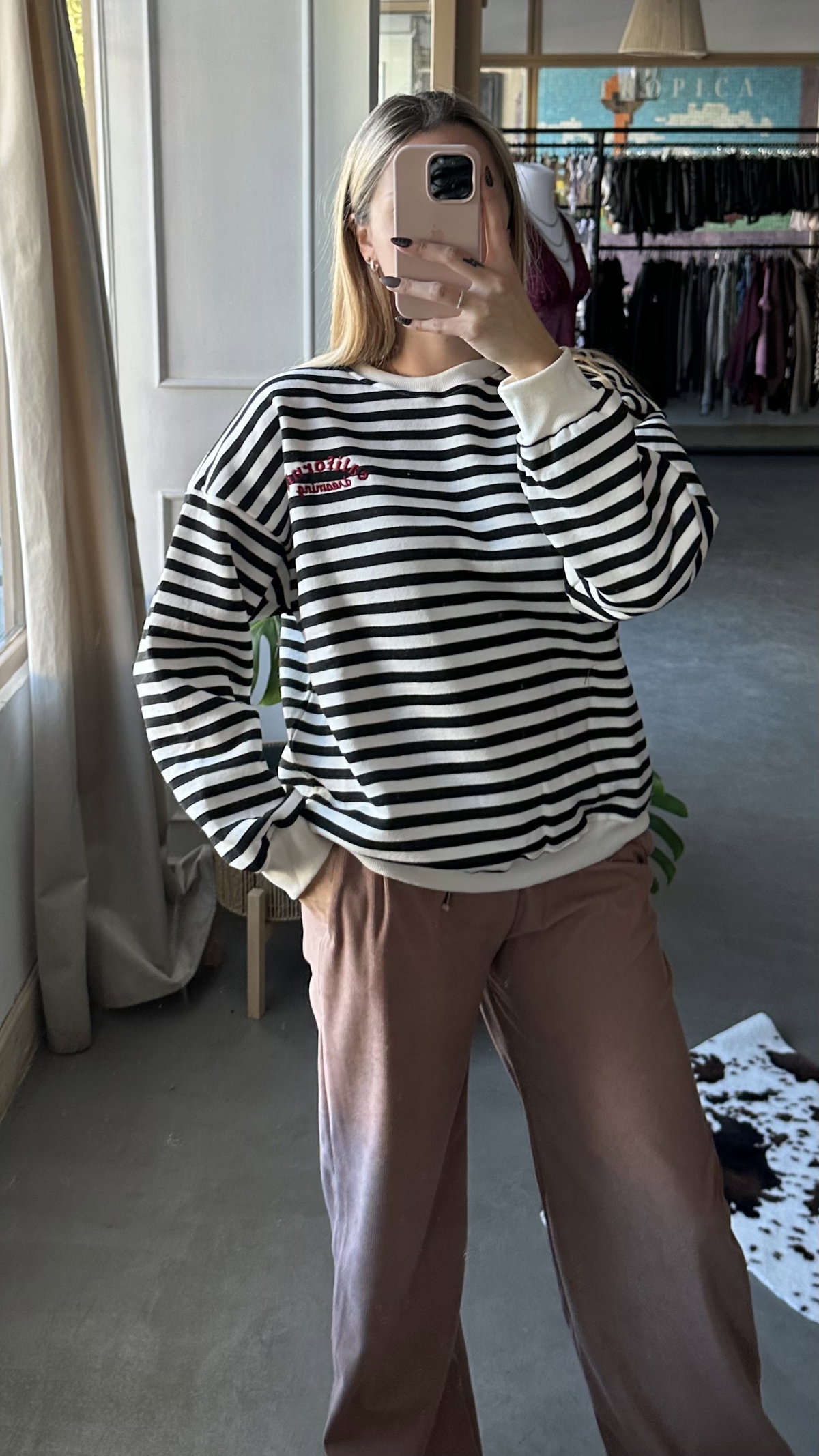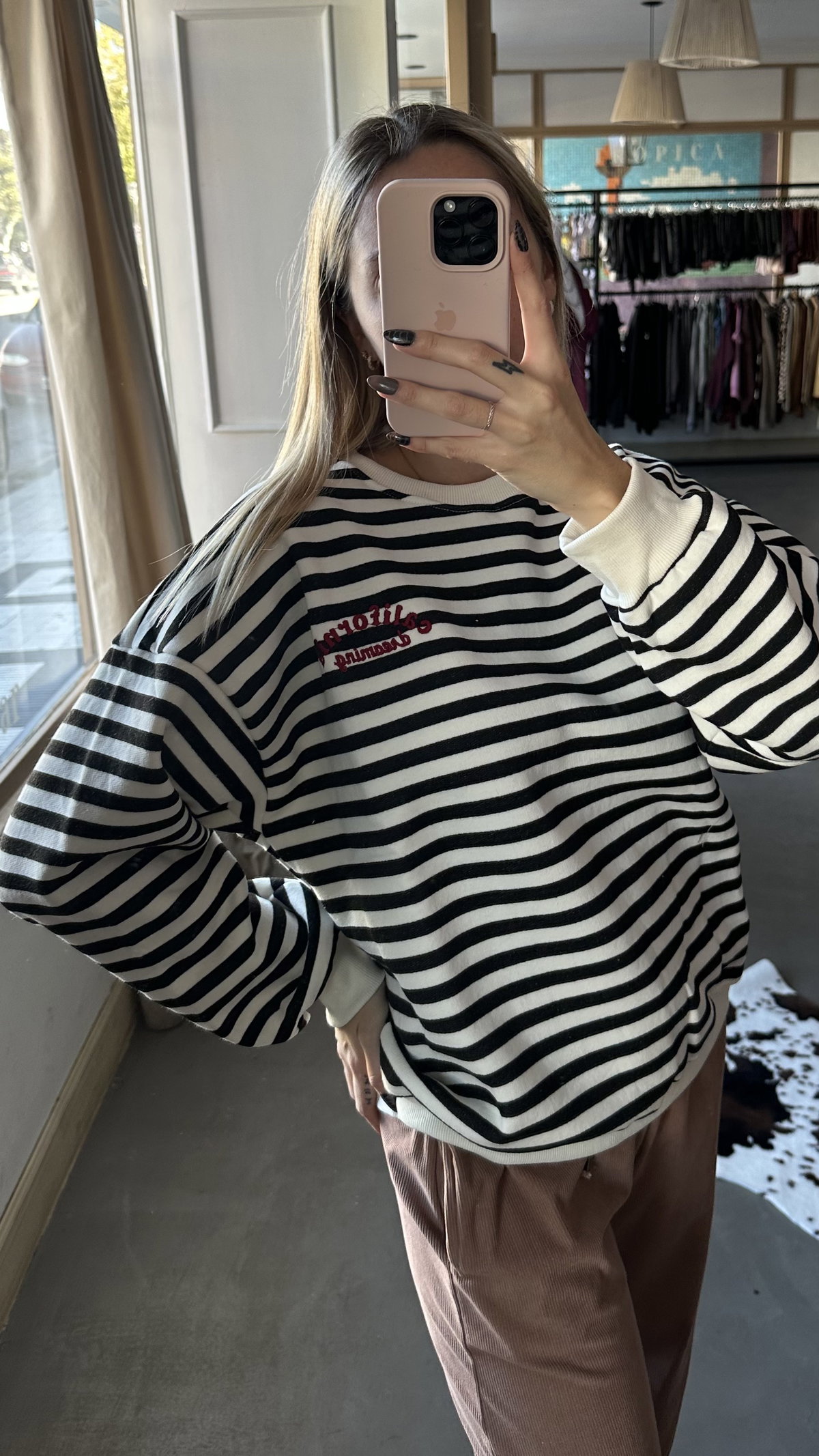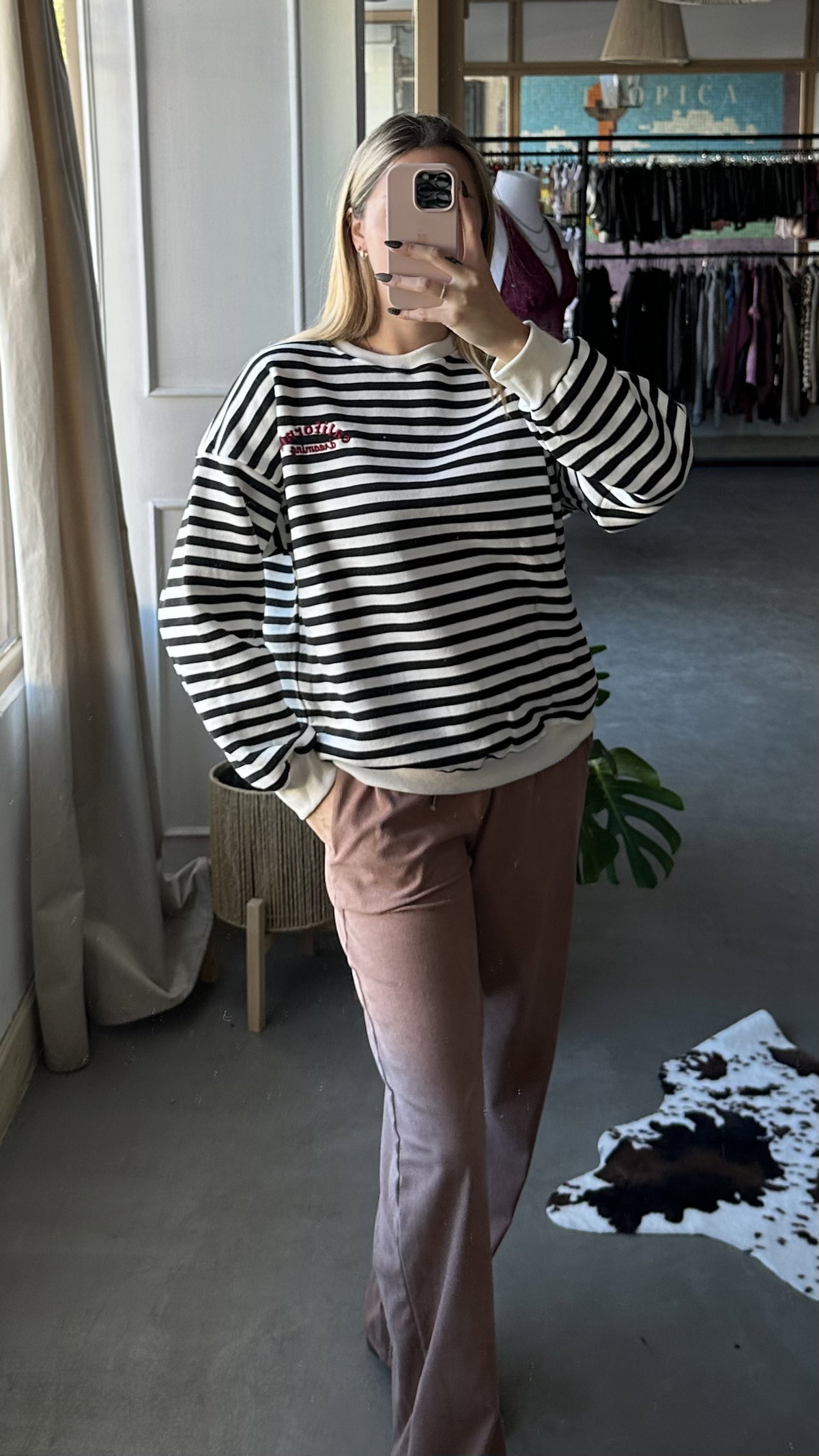 Buzo frizado con bordado en el frente, de algodon. modelo over, largo a la cadera, talle unico va hasta un XL.