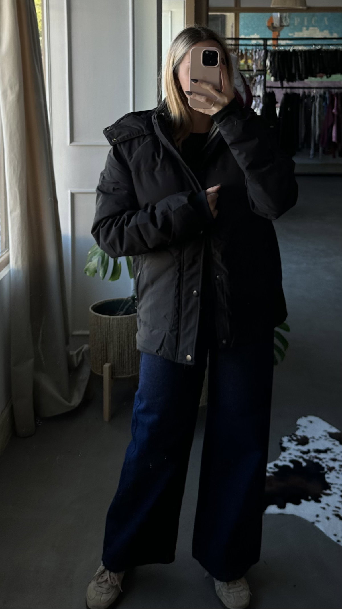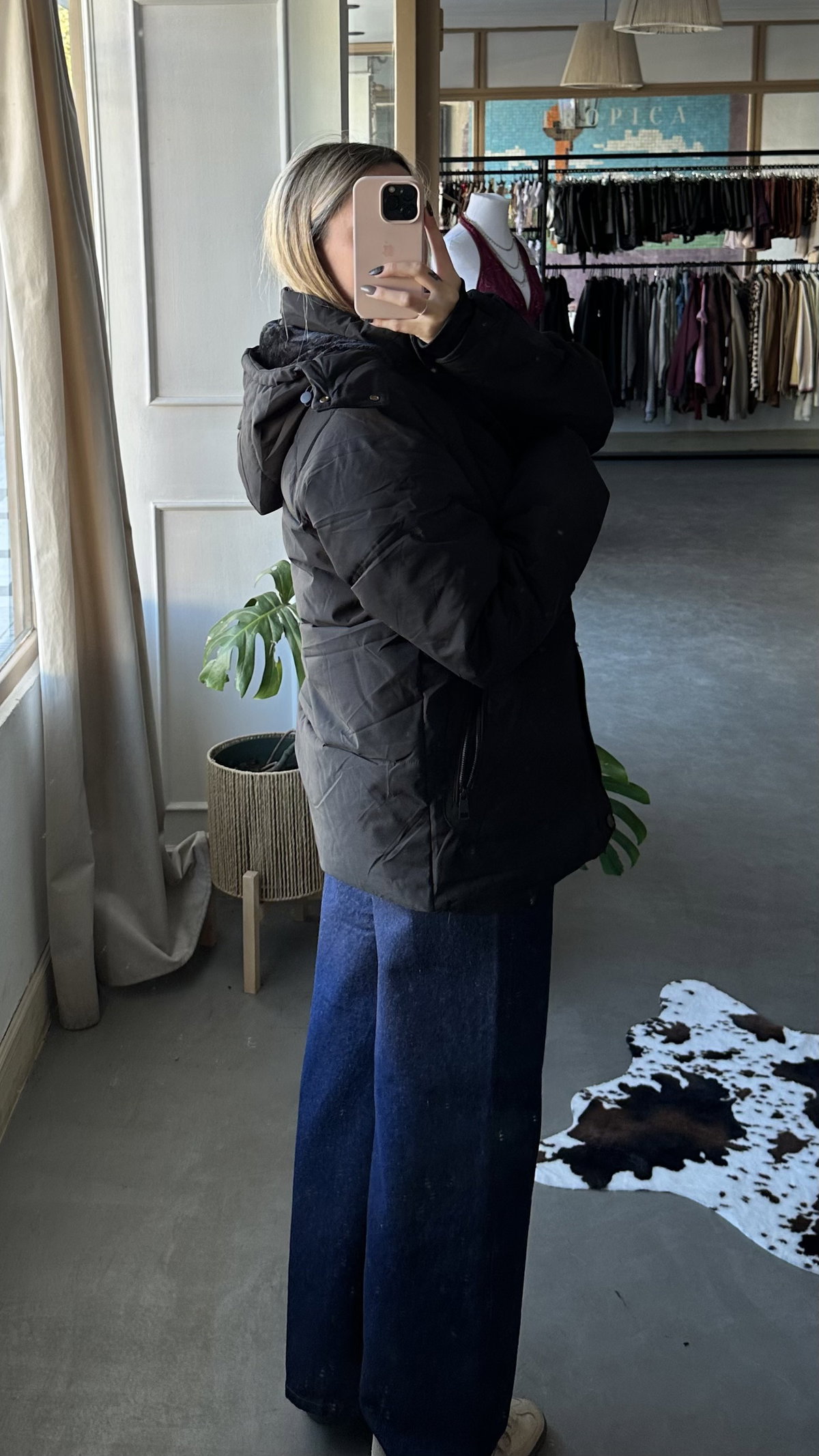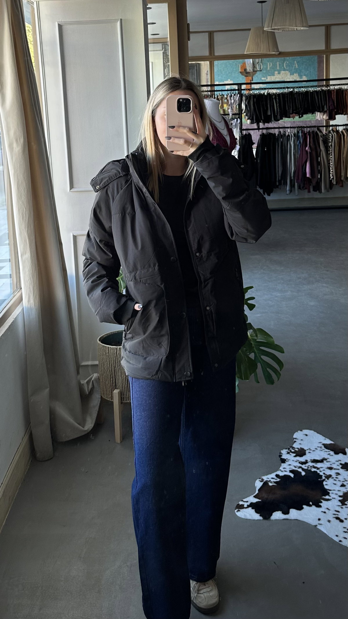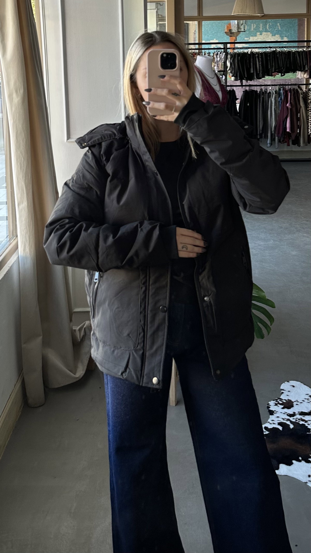 campera inflada importada. con interior de piel. trae bolsillos. larga debajo de la cola, la capucha es removible (con cierre). talles amplios, se adapta a uno mas.