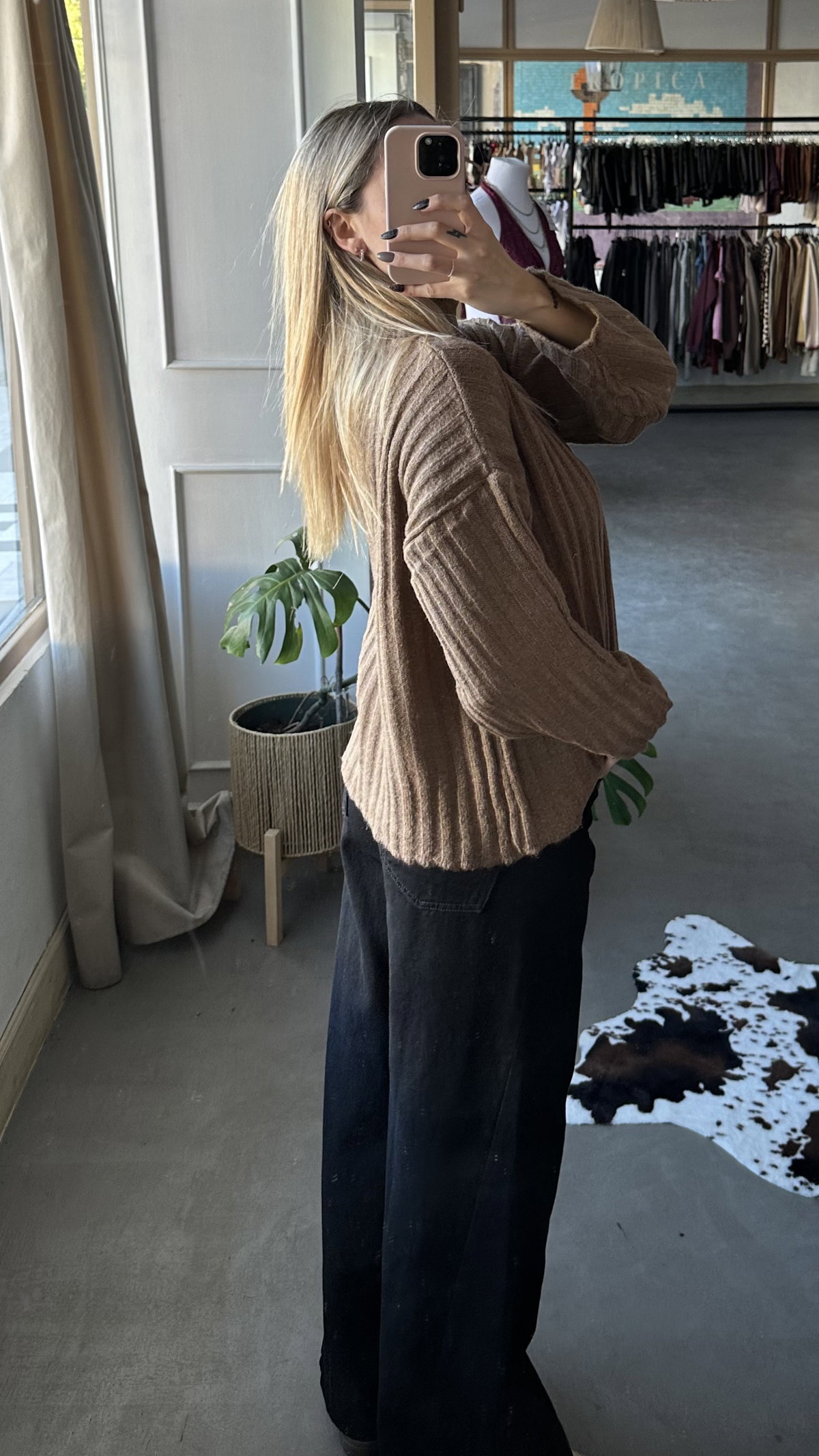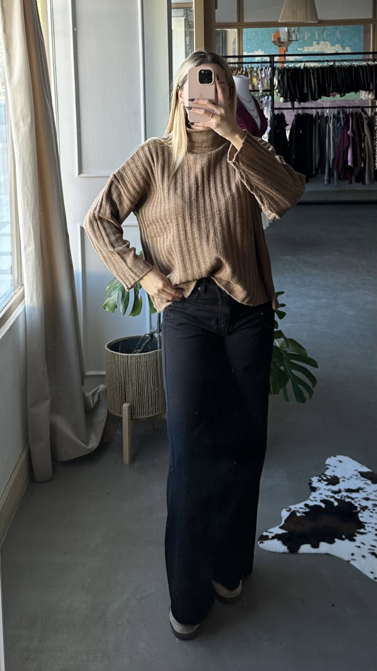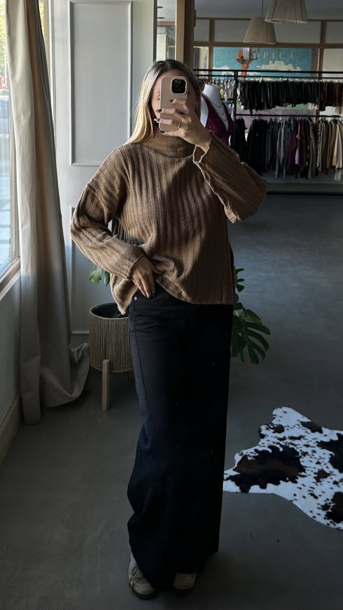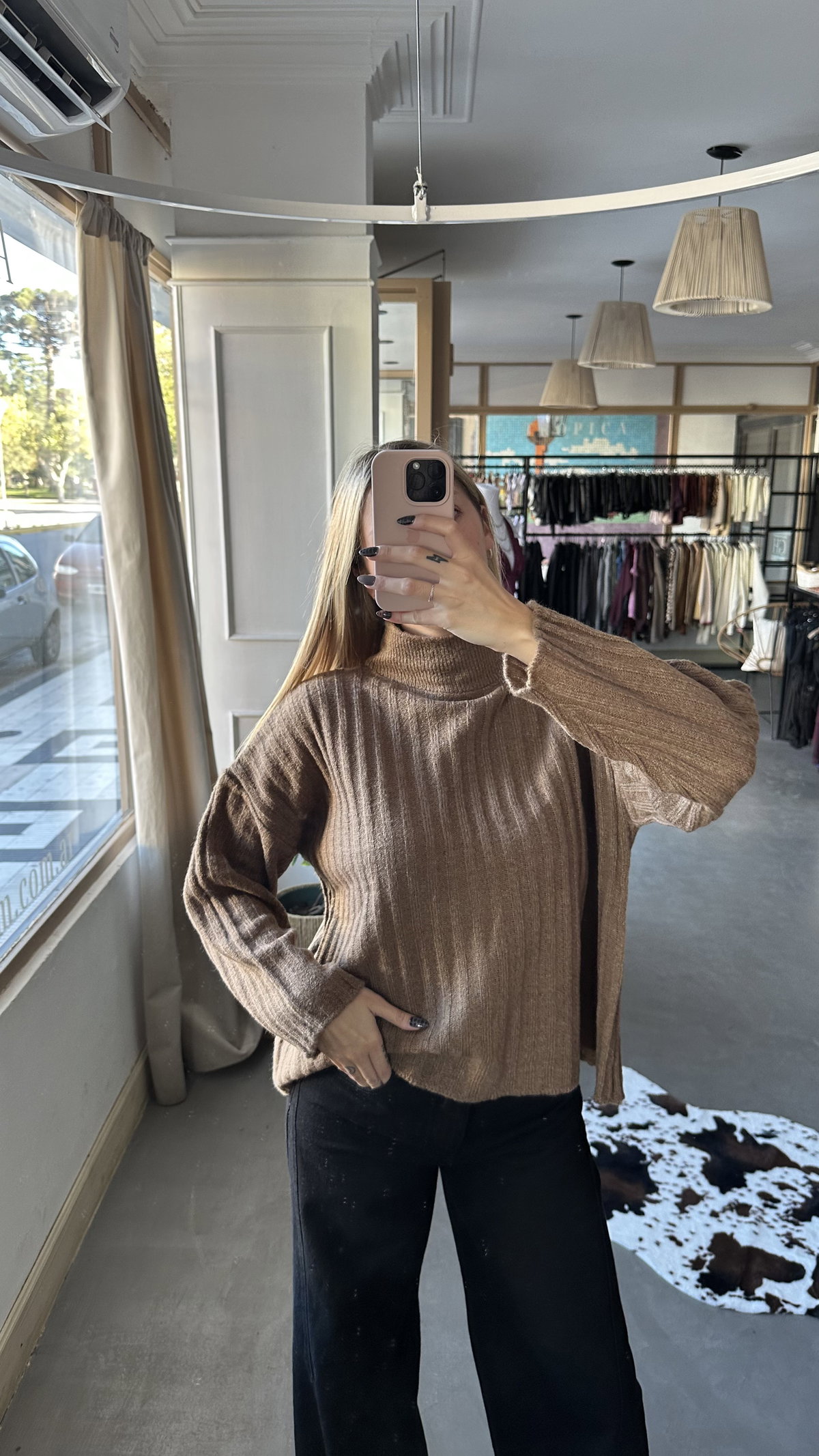 Sweater trenzado de hilo acrilico frizado, elastizado. con cuello polera. talle unico, se adapta hasta un XL aprox.