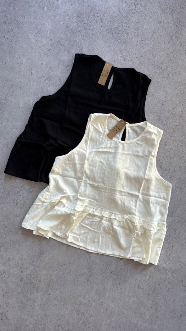 blusa de lino con volados, la tela es liviana con caida. modelo sueltito, largo a la cadera.