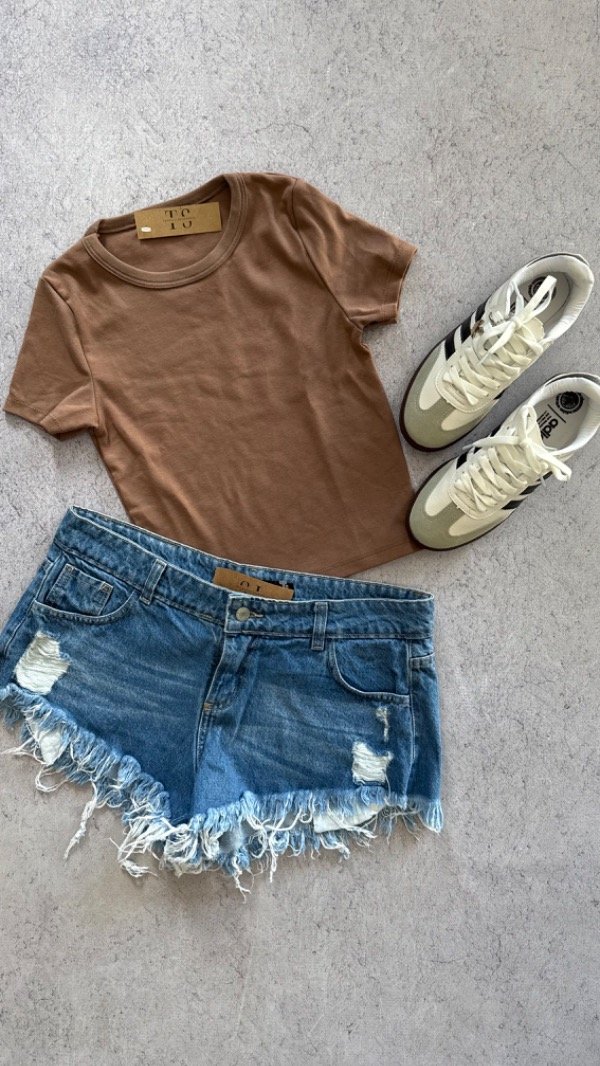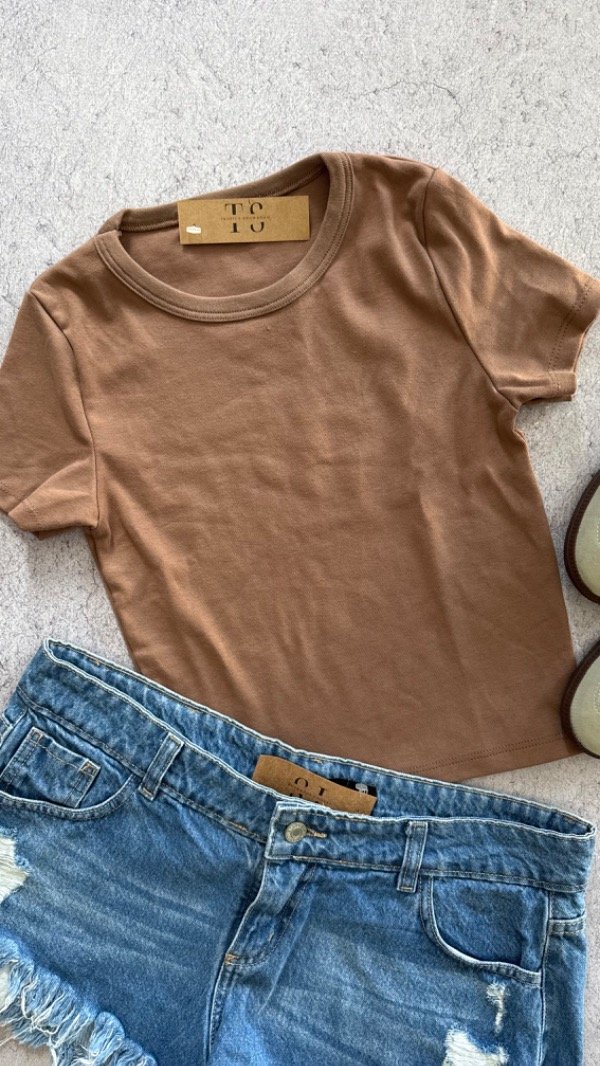 Remera corta de ribb, elastizada y larga arriba de la cadera.