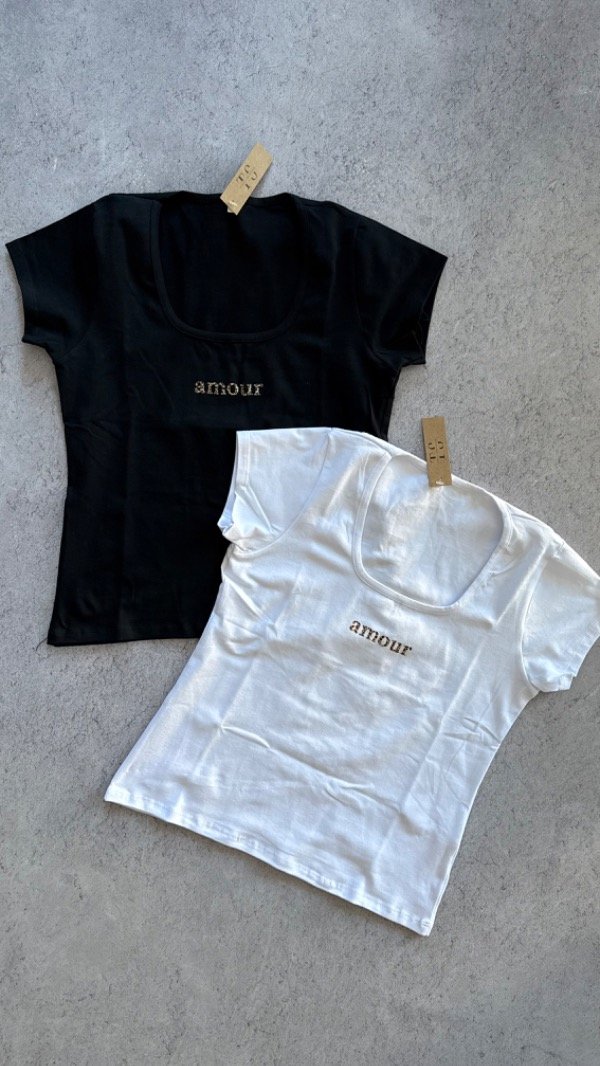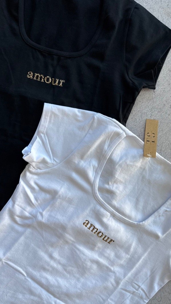 Remera manga corta de algodon con estampa, modelo largo a la cadera aprox