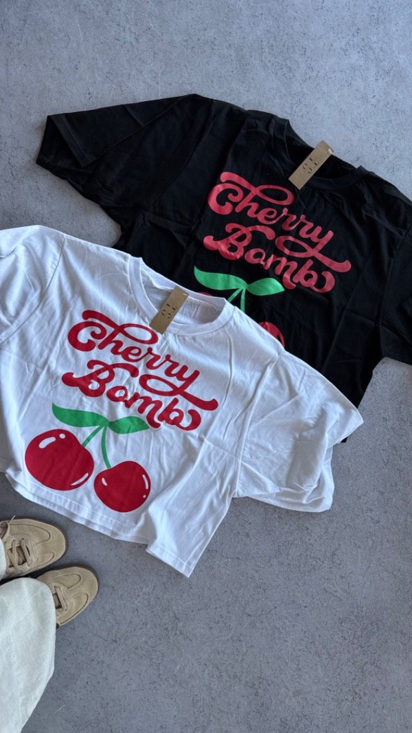 Remera corta de algodon con estampa, modelo boxy con manga casi al codo. Talle unico, se adapta hasta un XL aprox