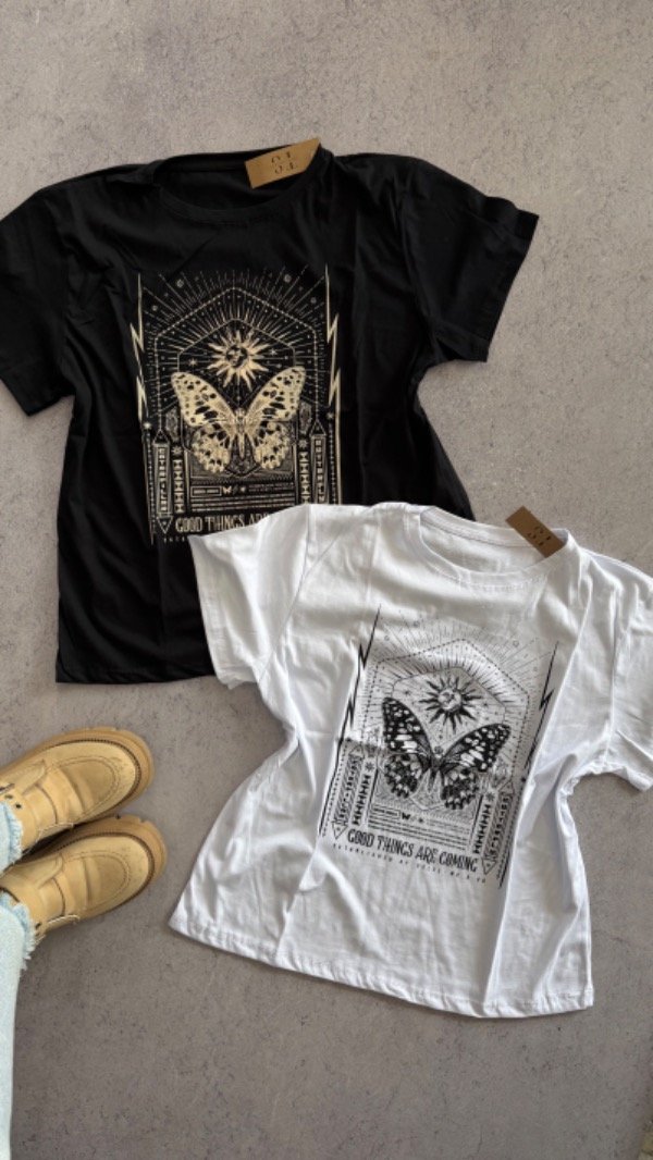 Remera estampada de jersey de algodon. talle unico amplio, se adapta hasta un XL.
