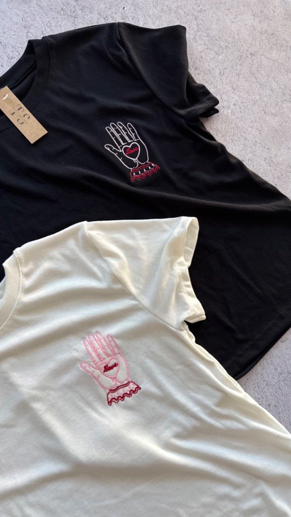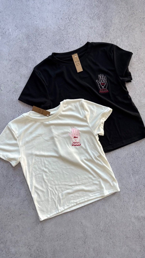 Remera manga corta de jersey gamuzada. elastizada. con bordado en el frente