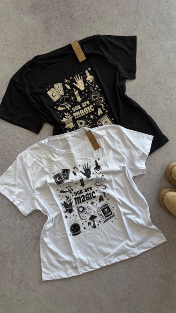 Remera estampada de jersey de algodon. talle unico amplio, se adapta hasta un XL.