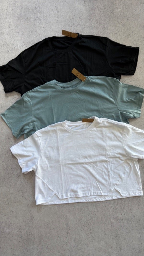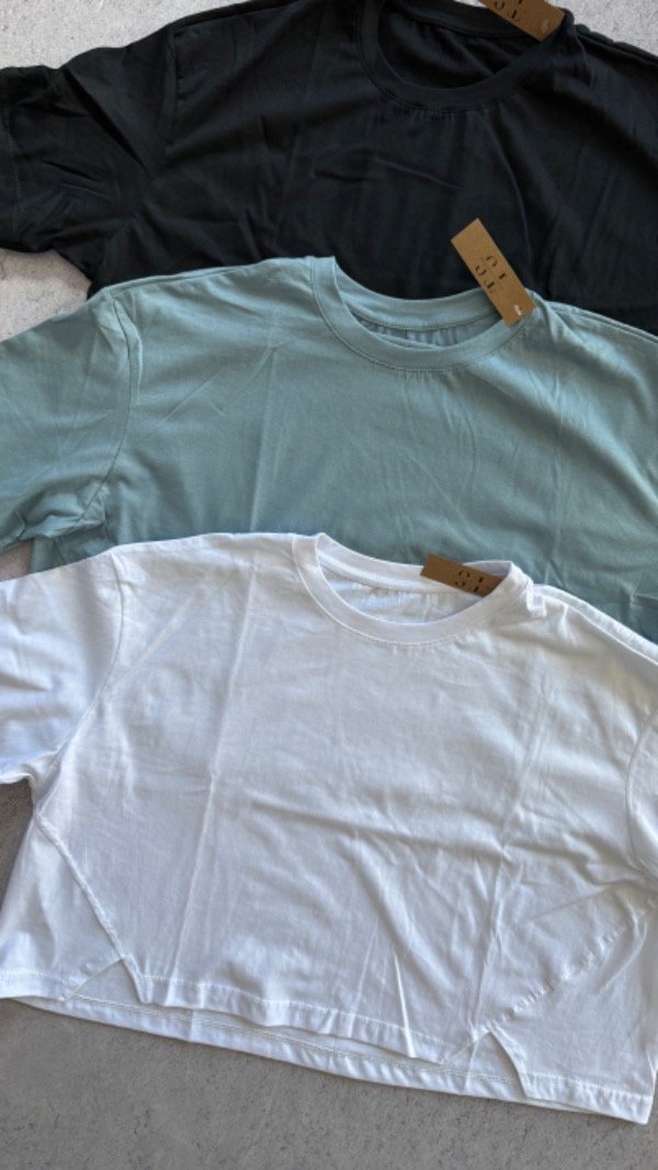 Remera lisa de algodon. talle unico amplio, se adapta hasta un XL. es corta entre la cintura y la cadera