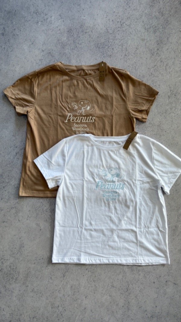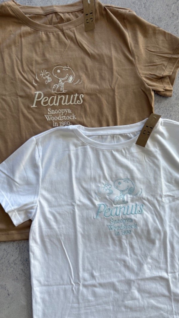 Remera manga corta de algodon con bordado, modelo largo a la cadera aprox