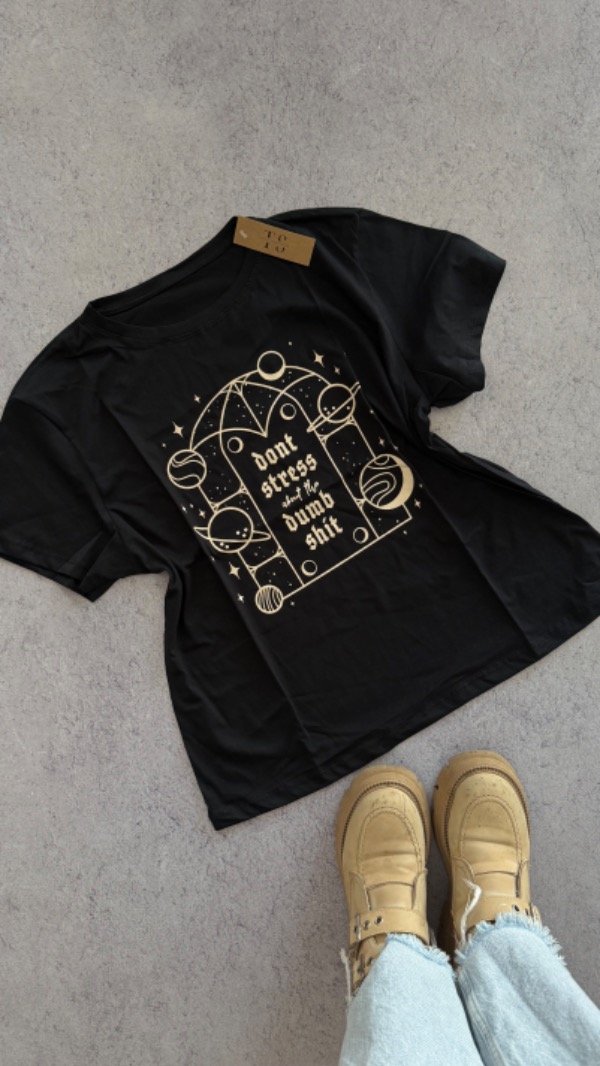 Remera estampada de jersey de algodon. talle unico amplio, se adapta hasta un XL.