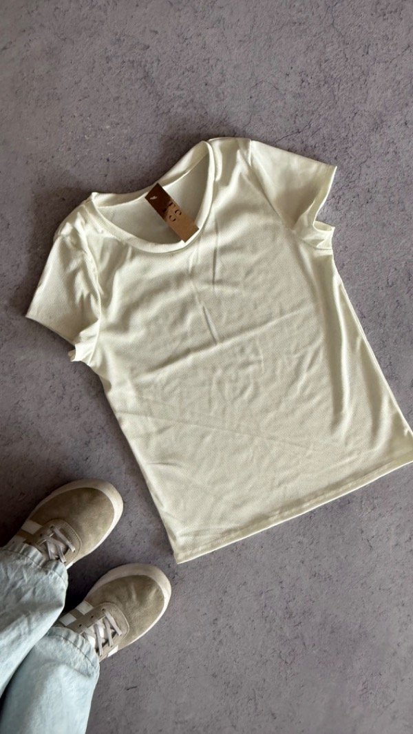 Remera manga corta de morley. elastizada, es arriba de la cadera.