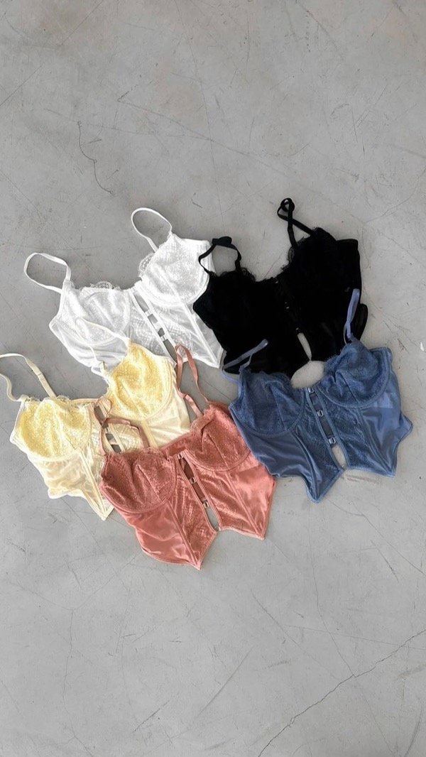 top de microtul y encaje, elastizado. tiene ballenas, aro y forro en las tazas.