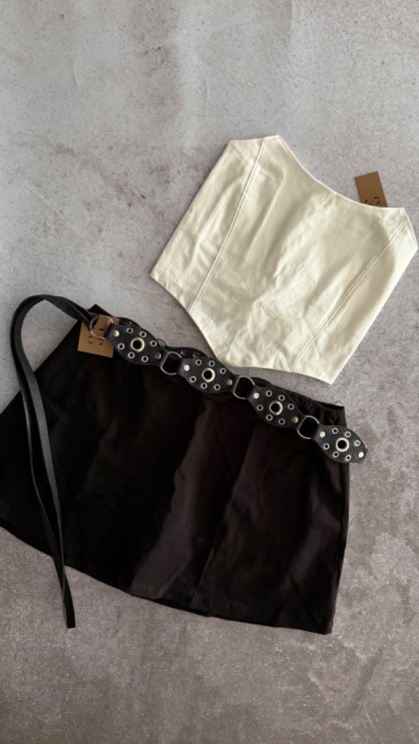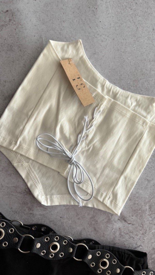 top de cuerina sin ballenas, espalda para atar. elastizado, talle unico aprox S/M