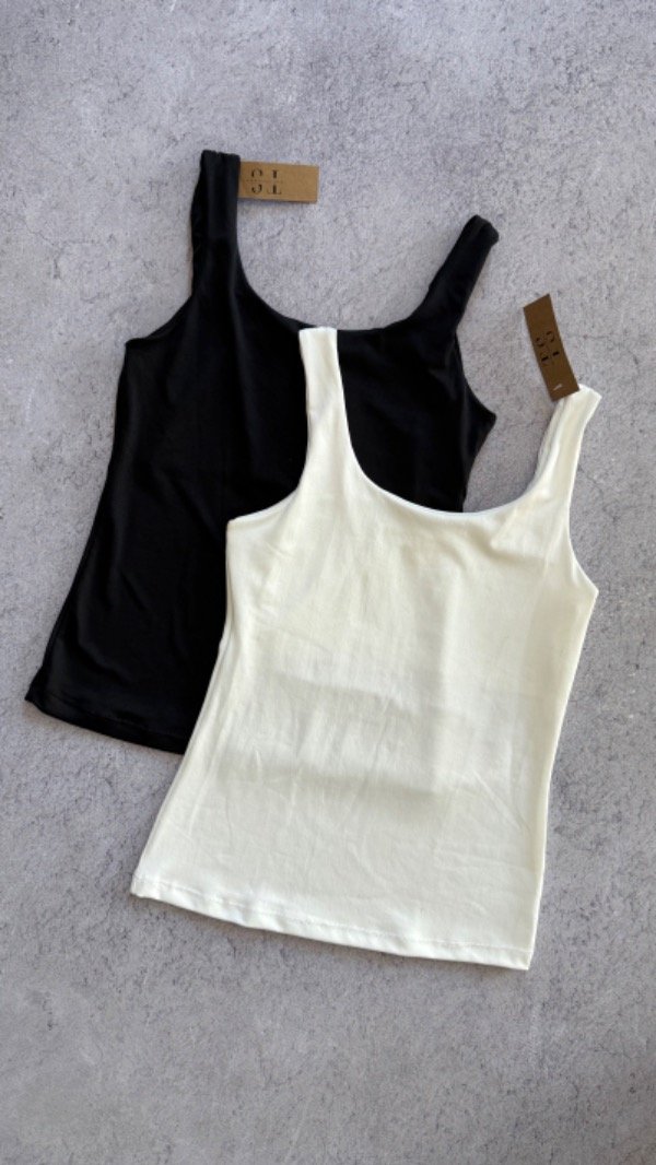 musculosa de modal soft, escote redondo, es larga a la cadera aprox.