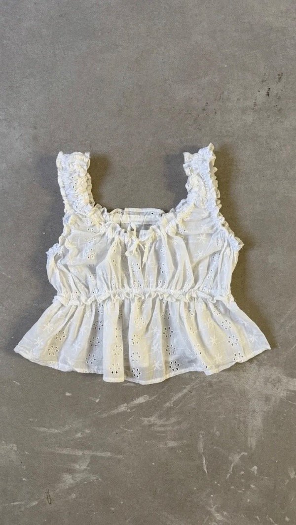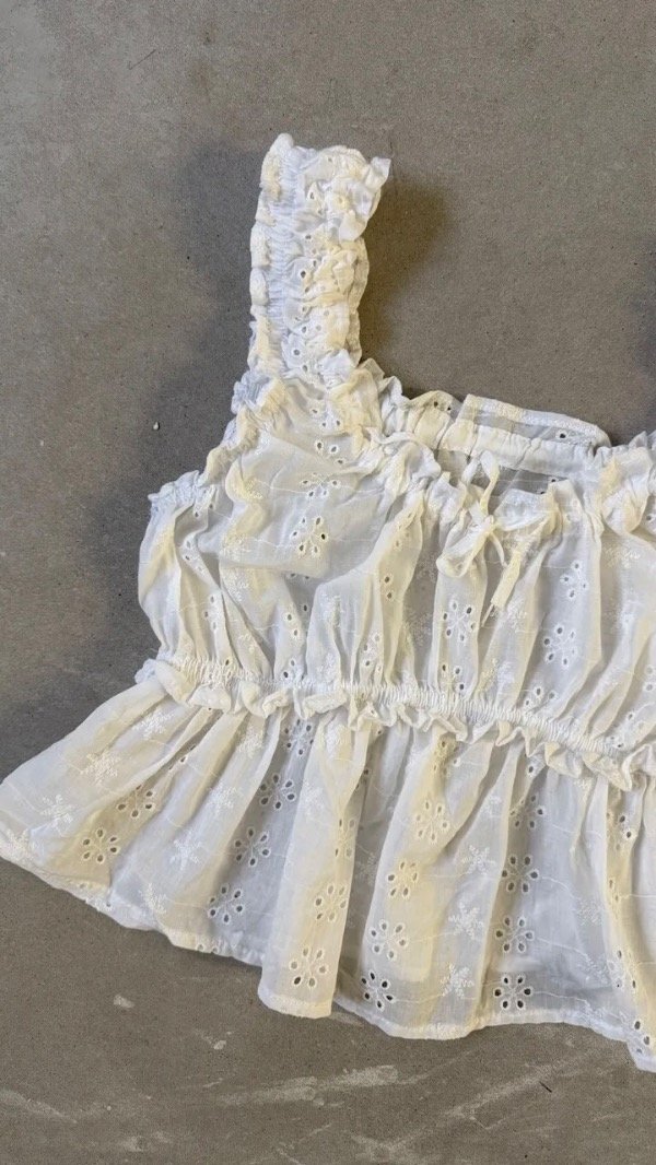 musculosa de brodery con voladitos. modelo corto a la cintura aprox, talle unico, aprox S