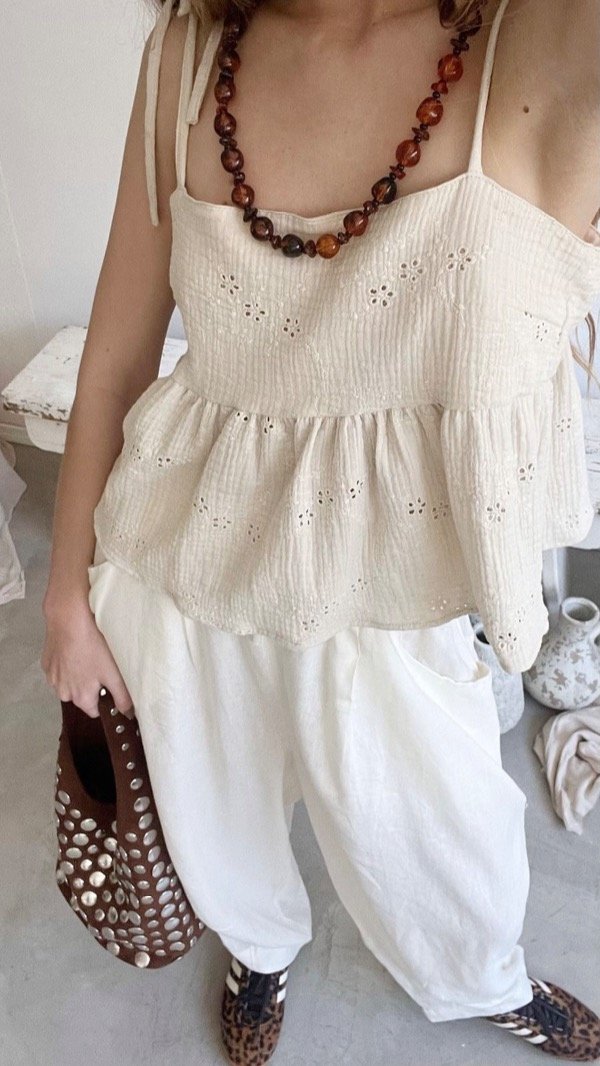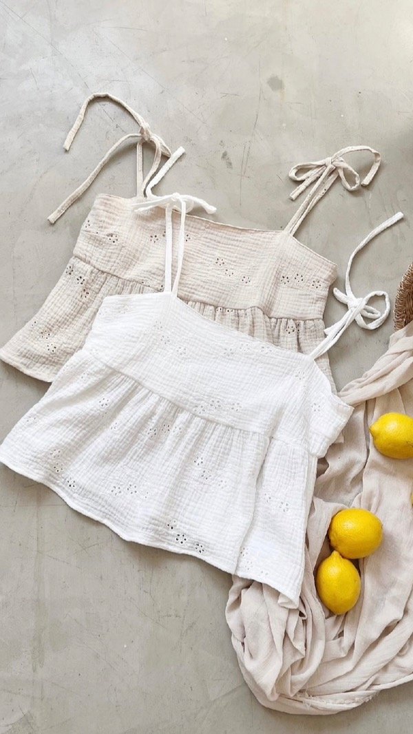 musculosa de brodery con forro interior. talle unico, aprox M. corta arriba de la cadera