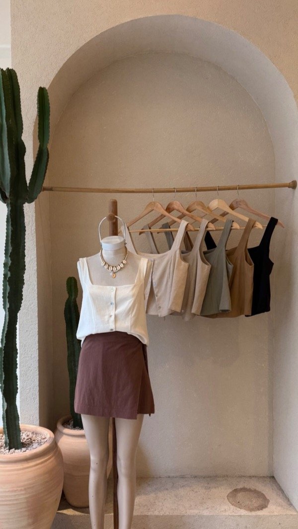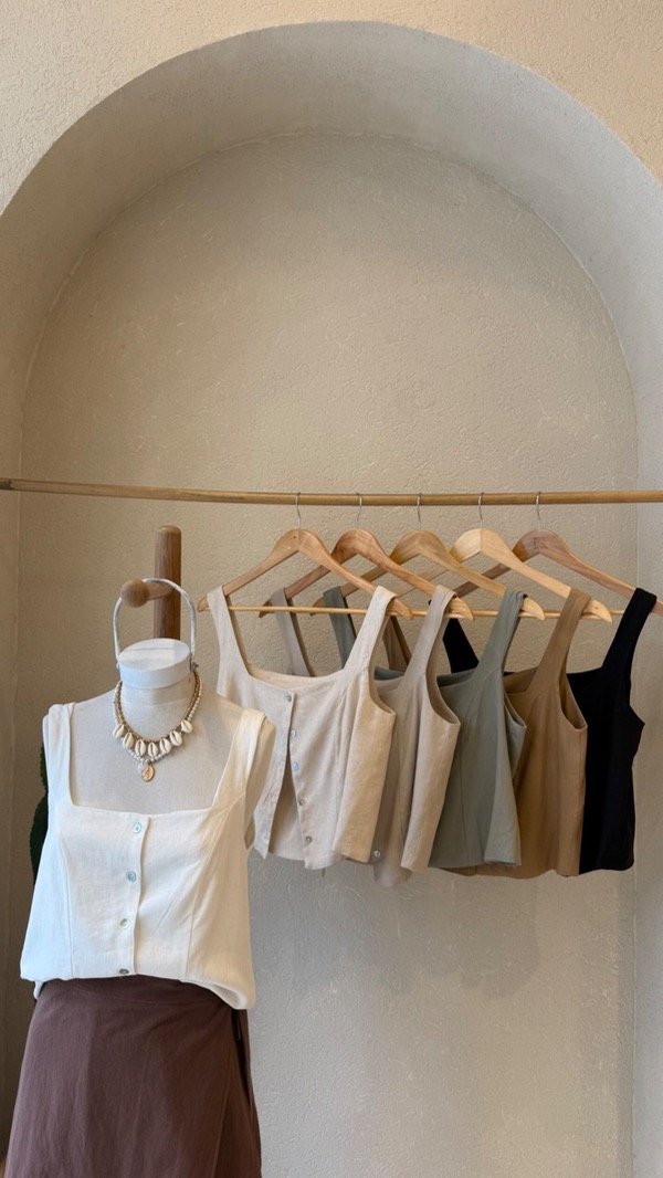 musculosa de lino con botones y forro interior. talle unico, aprox M. corta arriba de la cadera, modelo anchito abarca hasta 95/100 de busto
