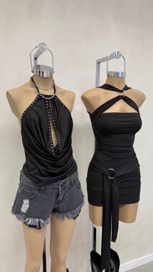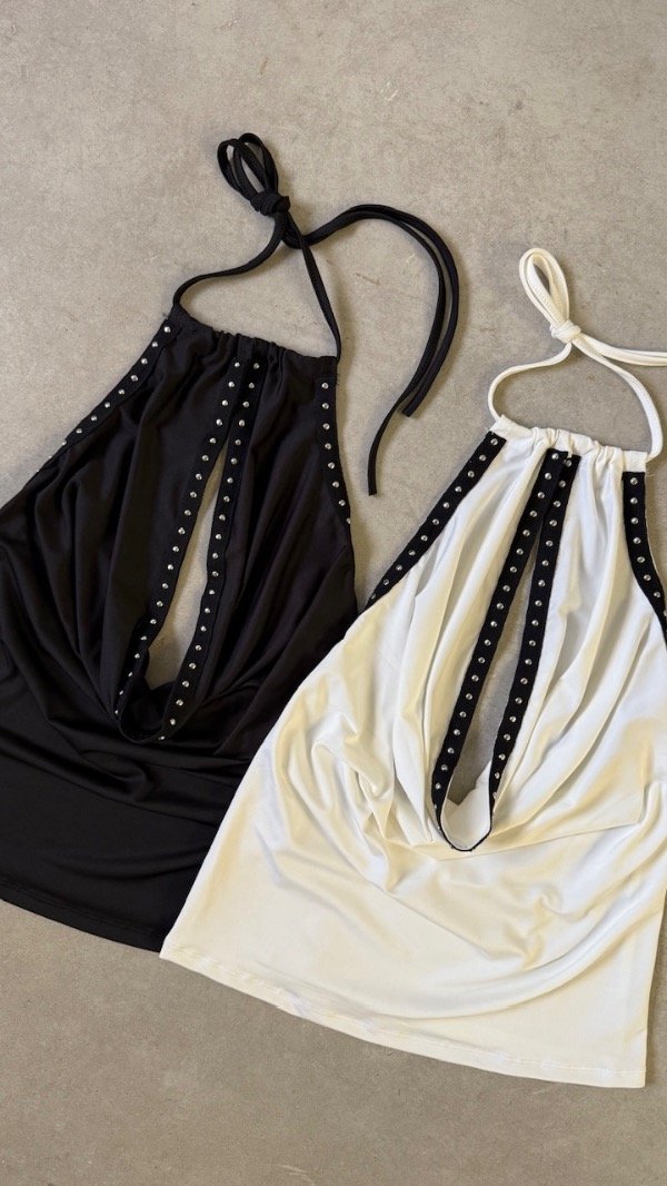 top de microfibra con tachas. elastizado con espalda descubierta. talle unico aprox S/M