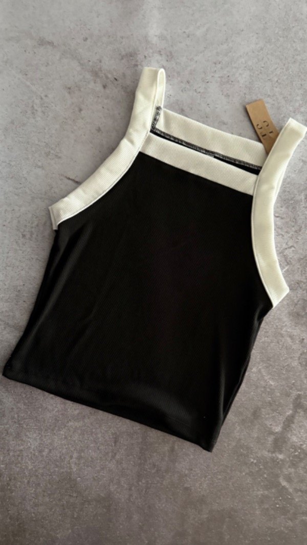 Top de morley, elastizado. con escote recto. largo a la cintura aprox