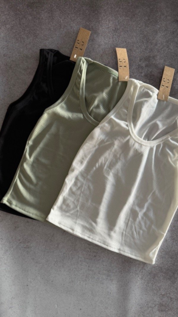 top de morley con escote redondo. largo a la cintura. talle unico, aprox S/M