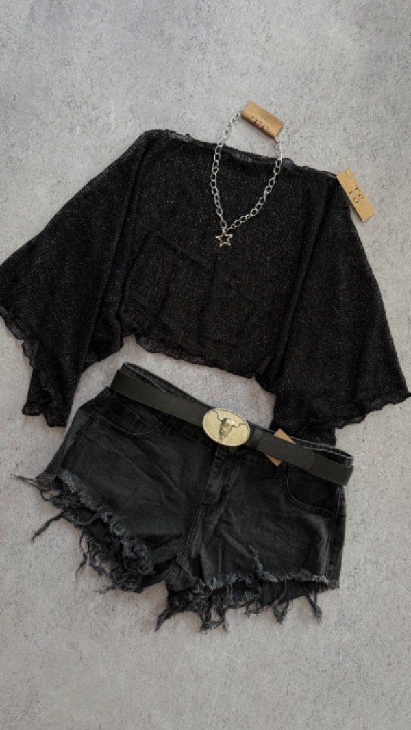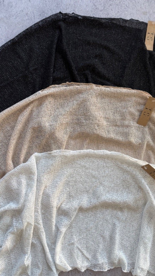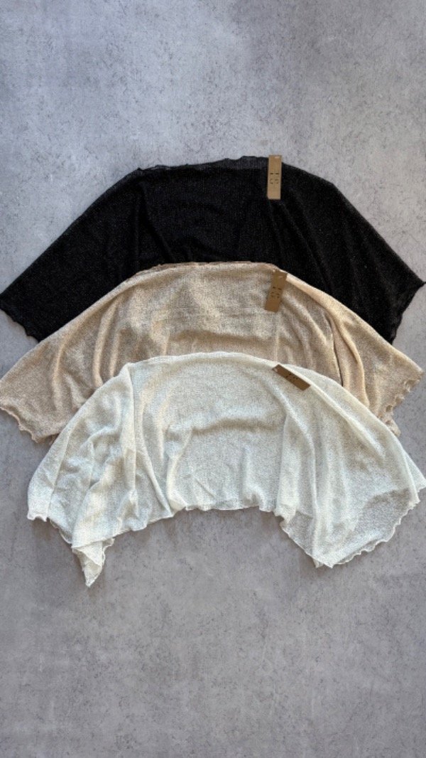 top de encaje y lurex, tipo "poncho". elastizado, talle unico