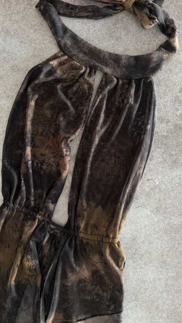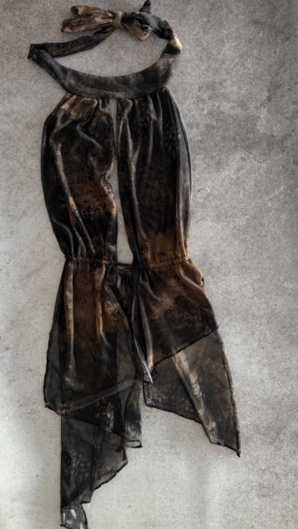 top de microtul irregular, con doble tela en el busto. talle unico, aprox S/M