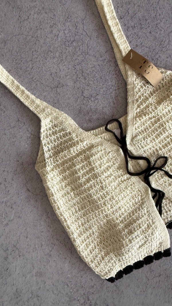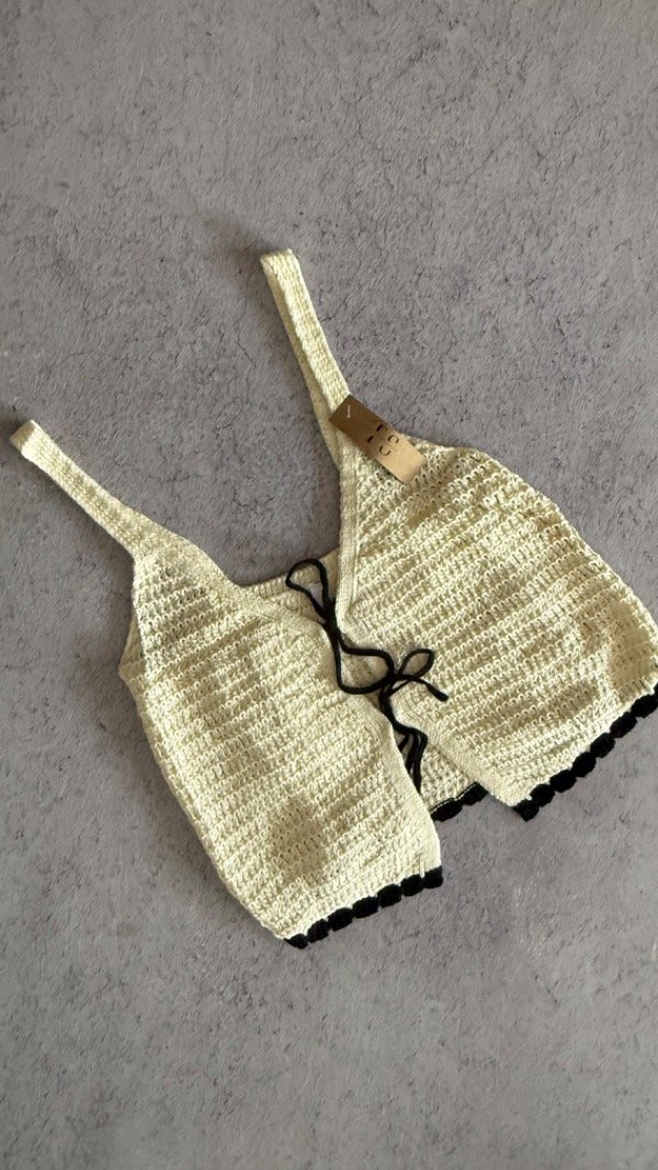 top de hilo calado tipo chaleco. se ata en el frente, corto a la cintura aprox. talle unico aprox S/M